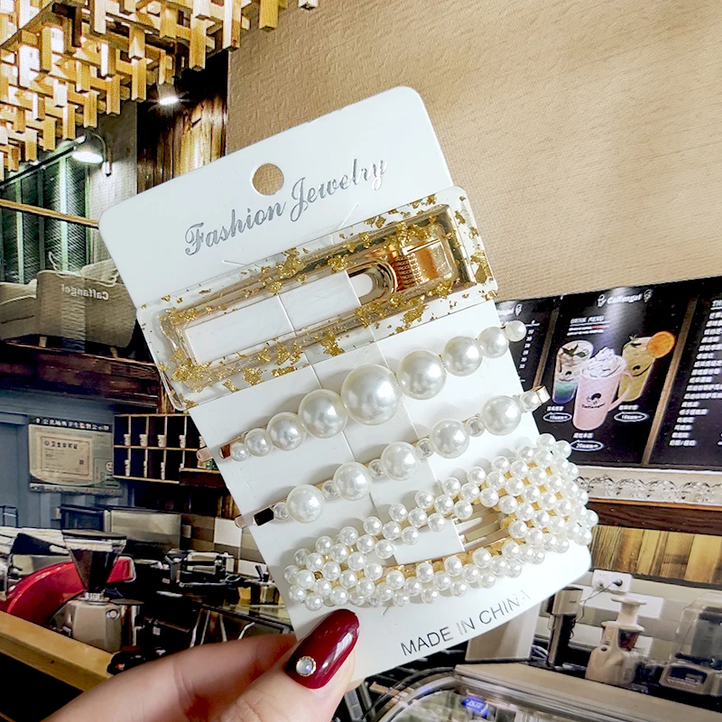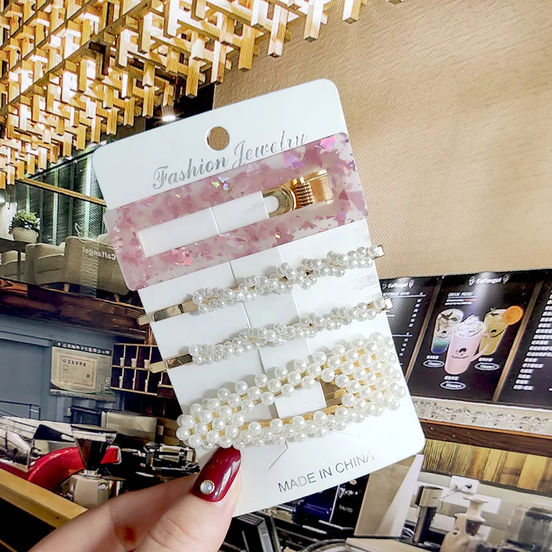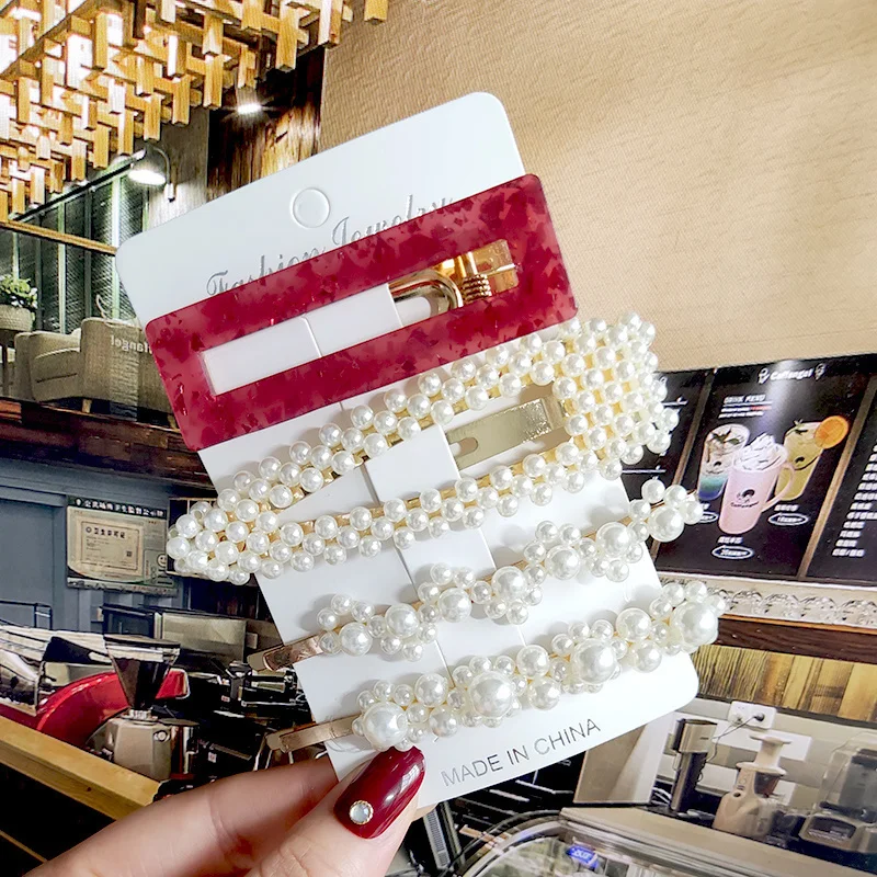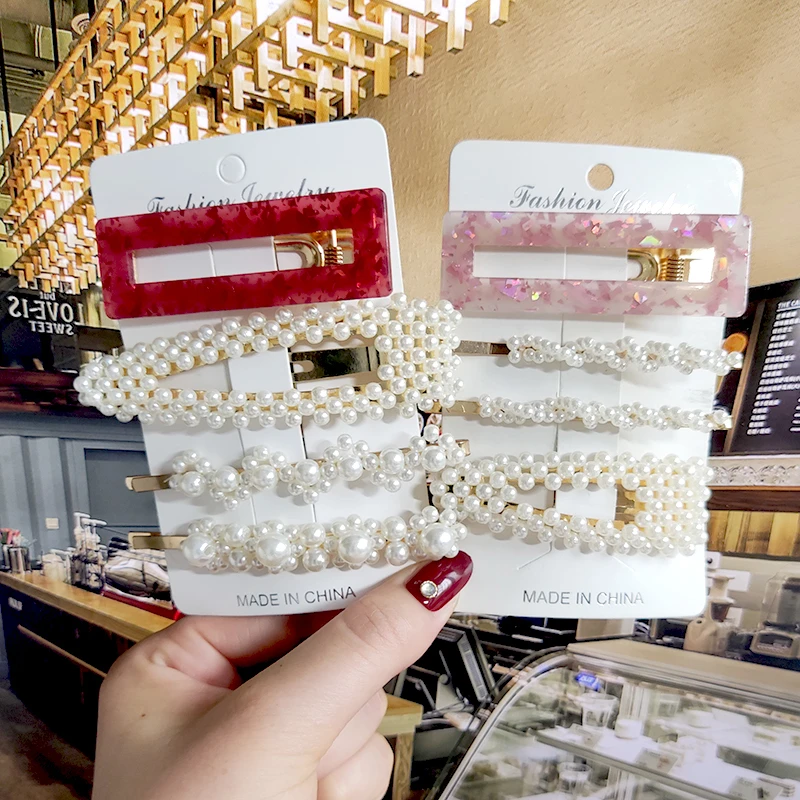Женские акриловые заколки для волос, модные геометрические заколки для волос с жемчужинами и боковыми зажимами, 2022