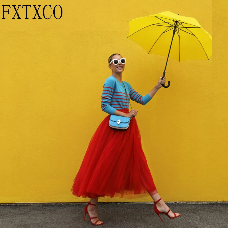 Женская юбка из фатина, Повседневная Красная Эластичная юбка на заказ в несколько рядов, в Корейском стиле, осень 2020