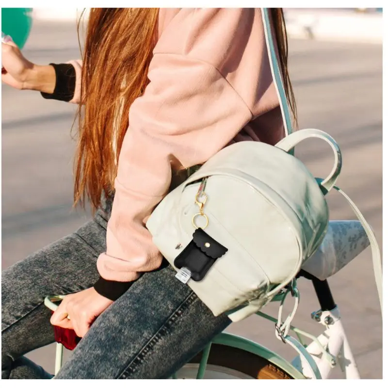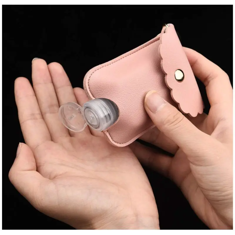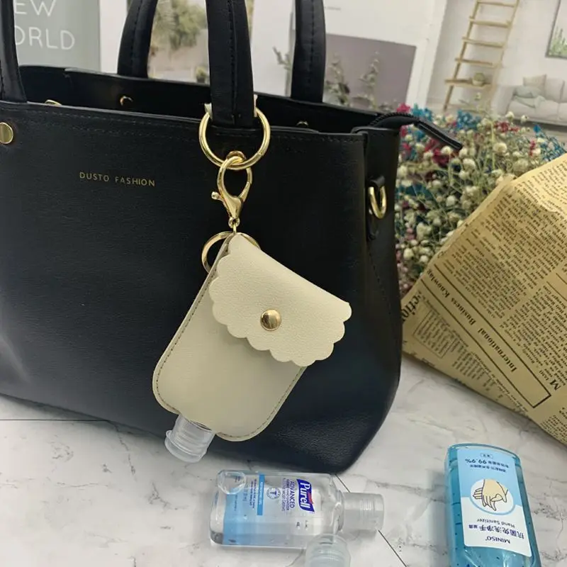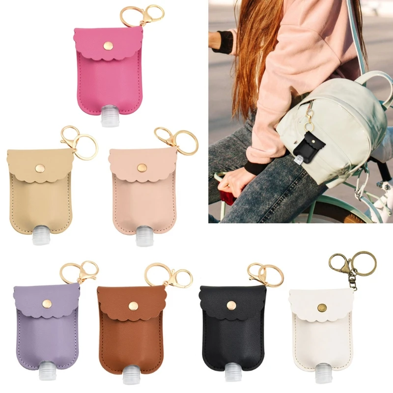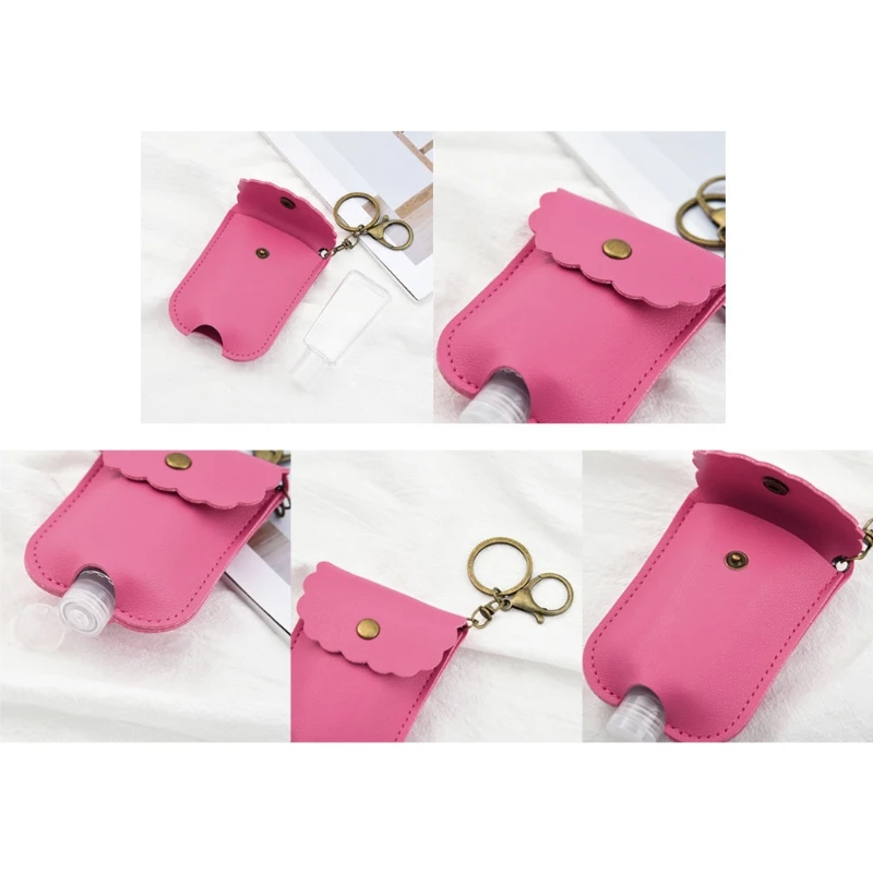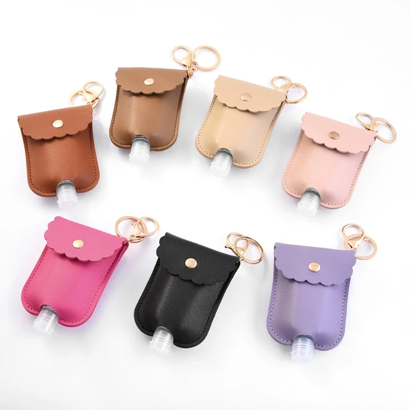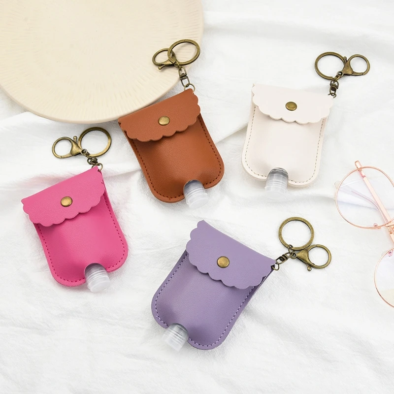 Портативная бутылка-пульверизатор, пустая герметичная пластиковая бутылка для дезинфицирующего средства для рук с кожаными зажимами для ключей