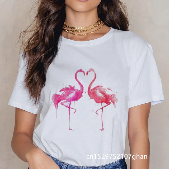 Женская футболка с принтом розового фламинго, женская футболка с тропическим принтом, Милая женская футболка с графическим принтом в стиле Харадзюку, Гавайские эстетические топы с круглым вырезом