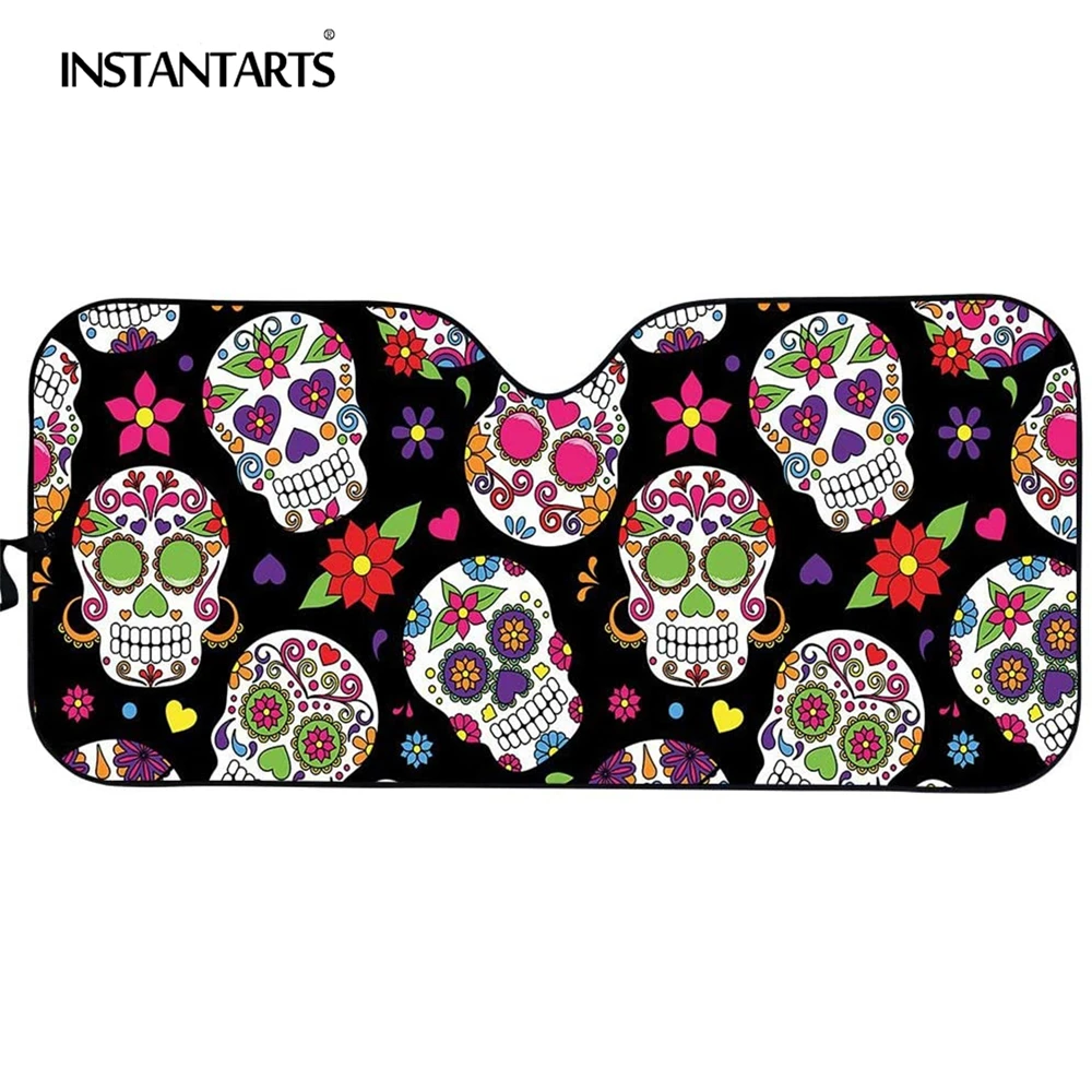 INSTANTARTS Sugar Skull дизайн автомобиля солнцезащитный козырек Переднее Окно Авто Аксессуары лобовое стекло Солнцезащитный козырек