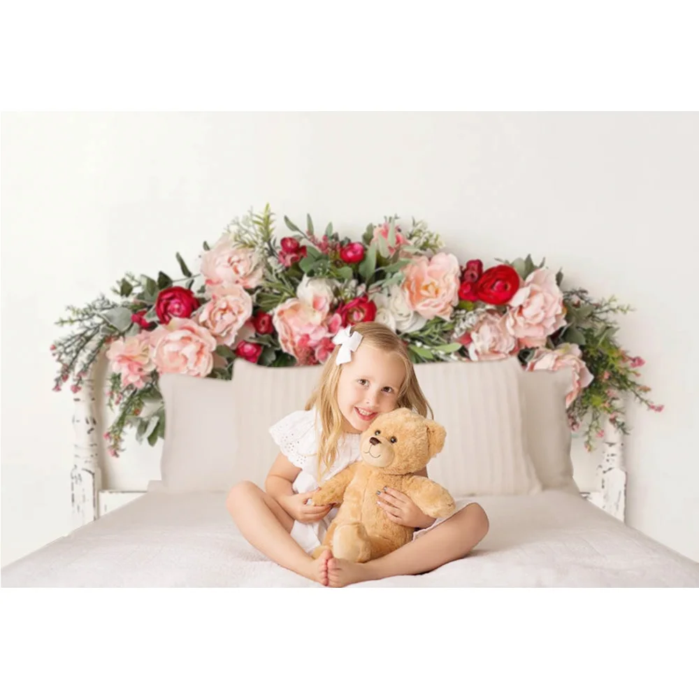 Фон для фотосъемки с изображением белой стены и изголовья кровати Рождественский портрет новорожденных Цветы вечерние видео фотосессия