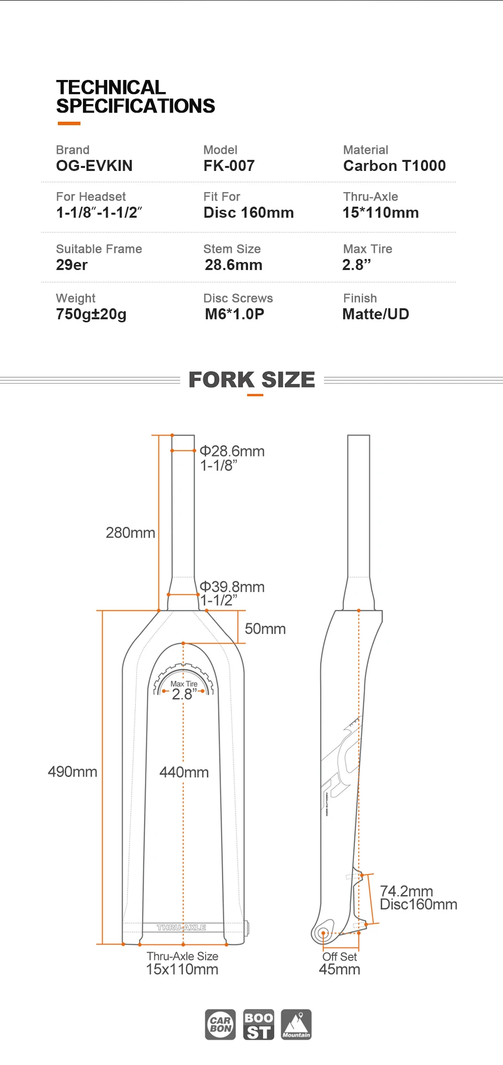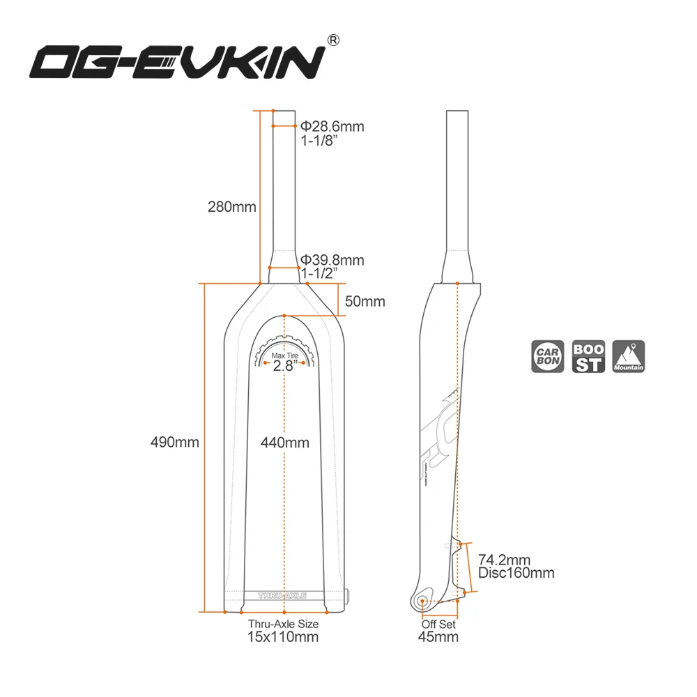 OG-EVKIN FK-007 29er Thru Axle 15x110 мм углеродная передняя вилка для горных велосипедов 1-18 "-1-12" вилка MTB углеродная вилка детали для горных велосипедов