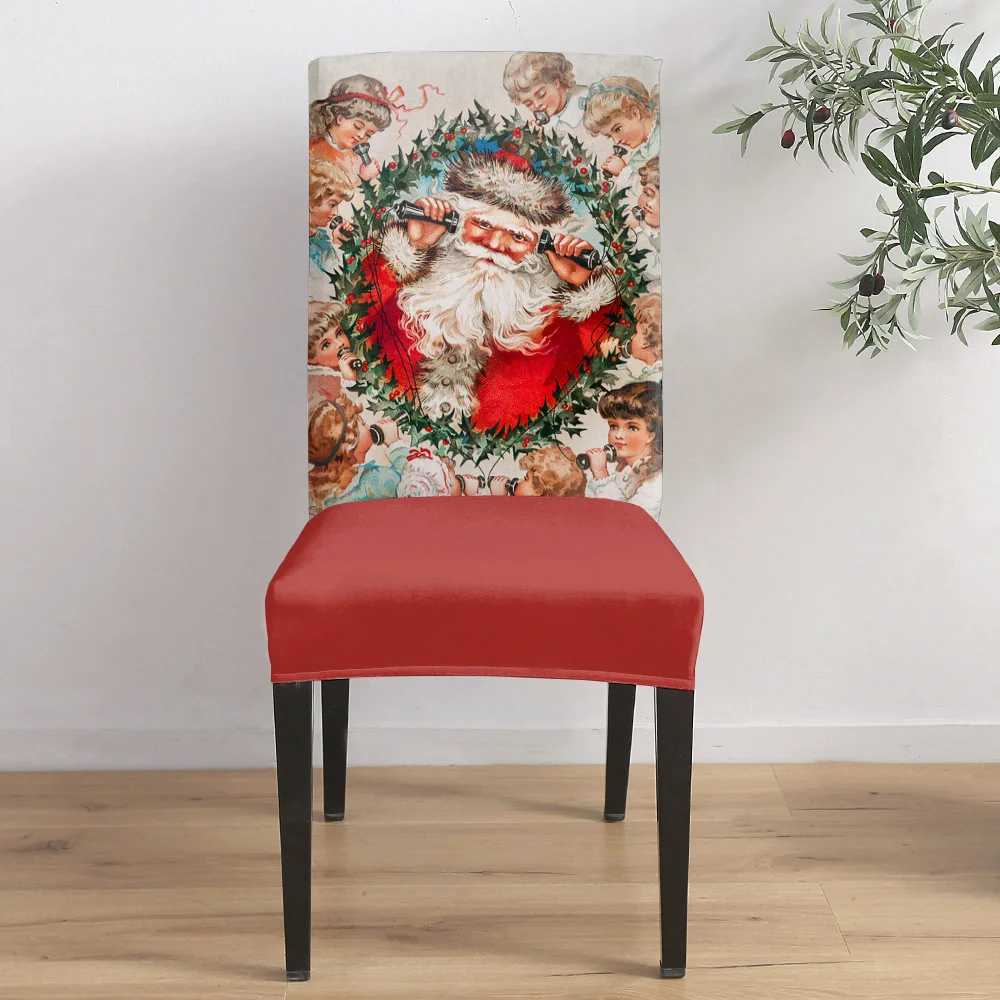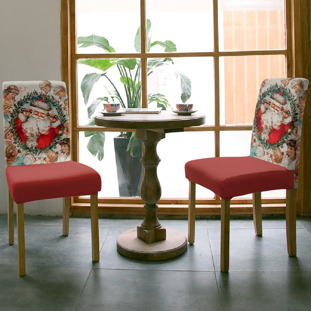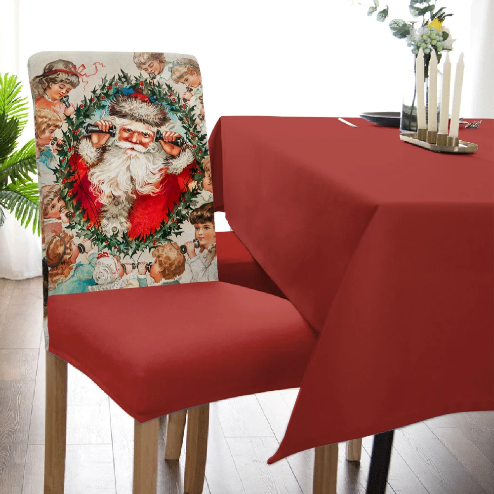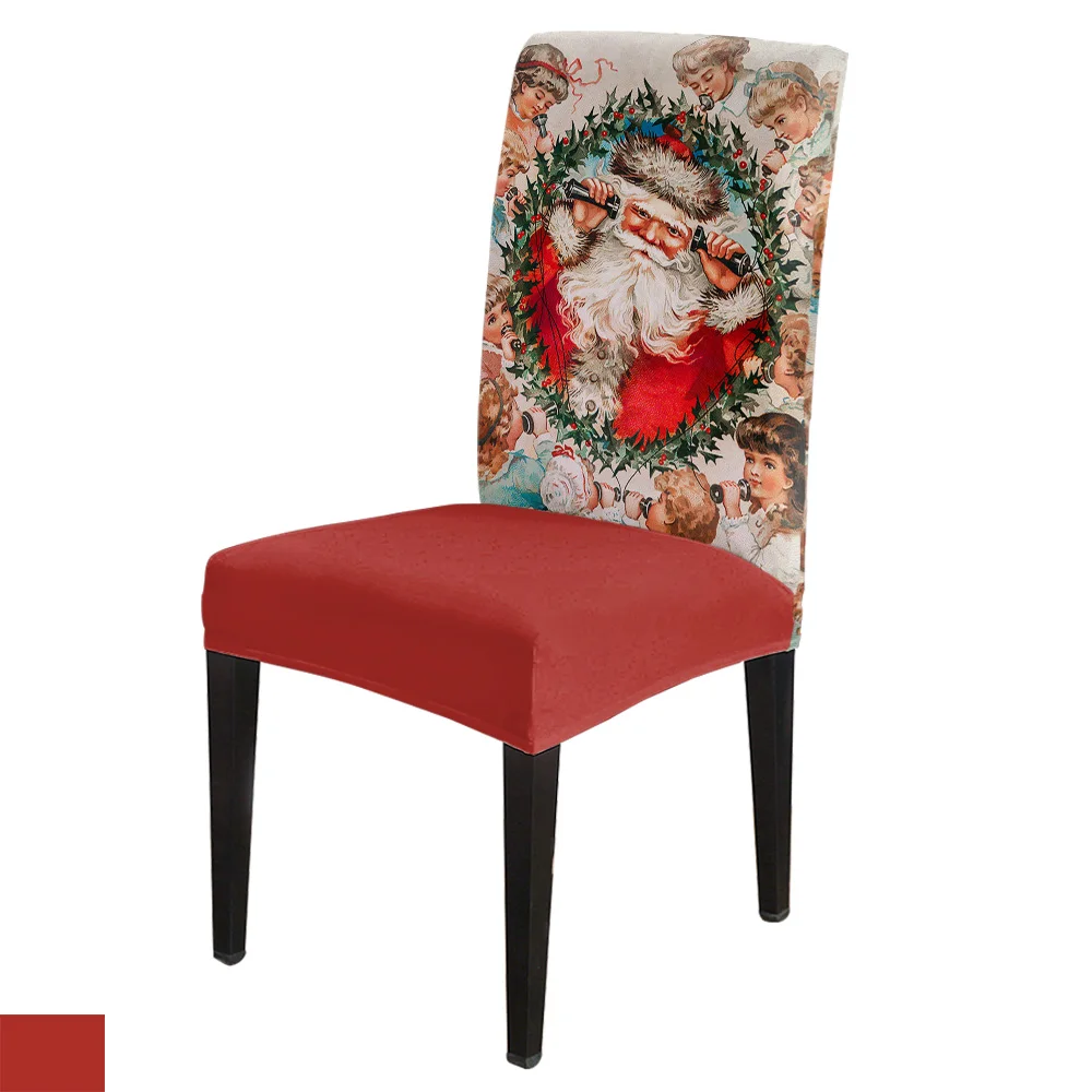 Чехлы на стулья обеденные эластичные, рождественские покрытия для стула, с изображением деда мороза, послушающего пожелания