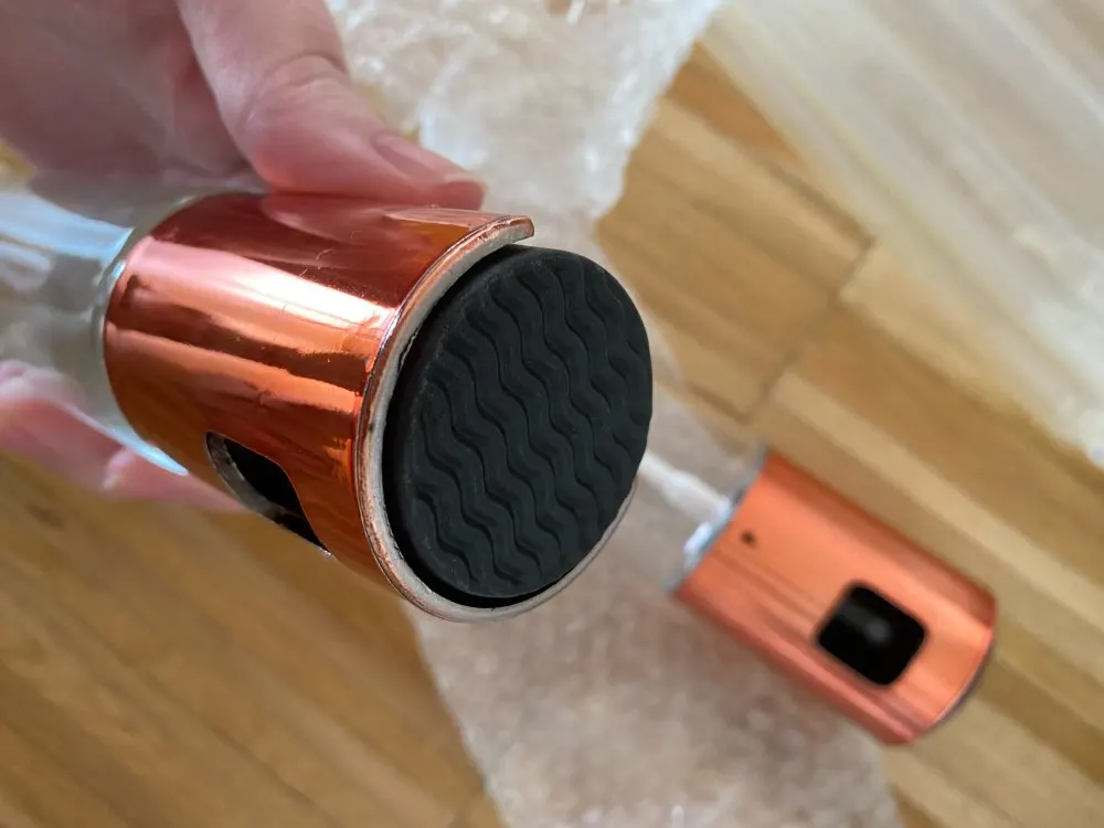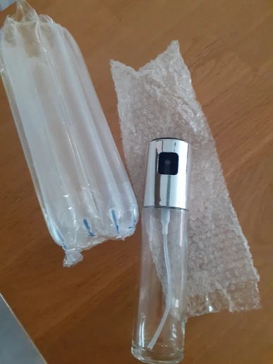 мне понравилась. упакована хорошо. оливковое масло разбрызгивает. отверстие для разбрызгивания немного смещено внутри механизма. немного масла там остаётся, но некритично