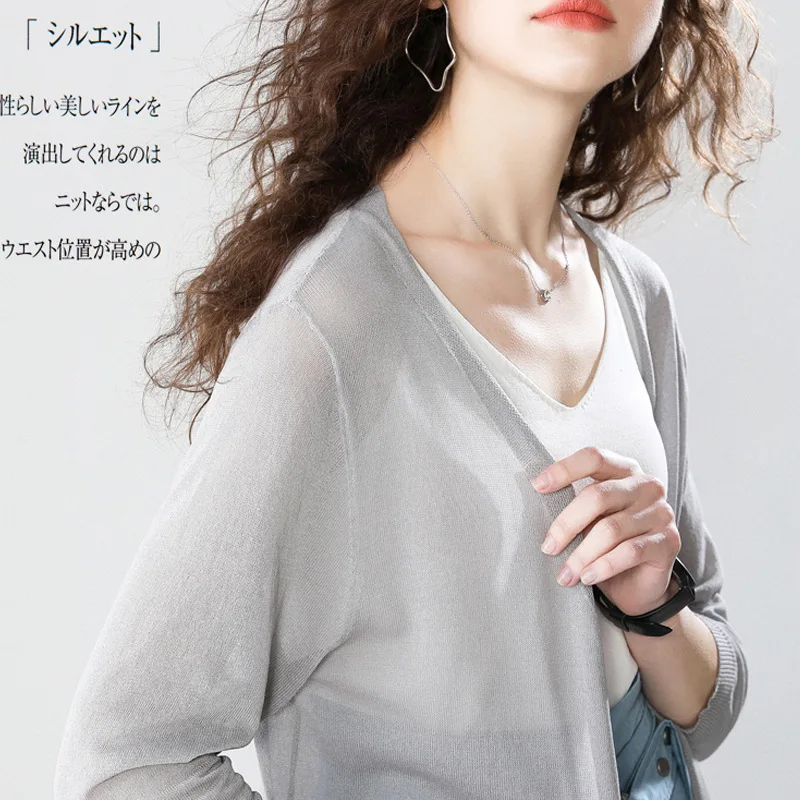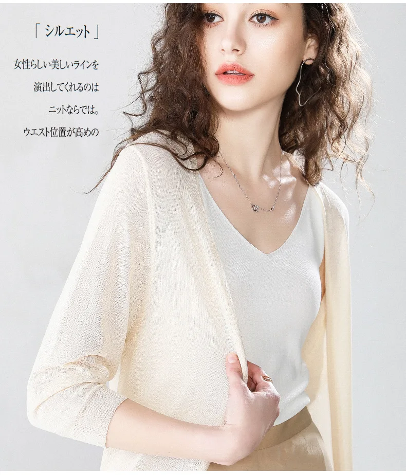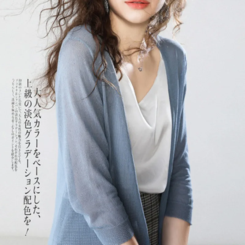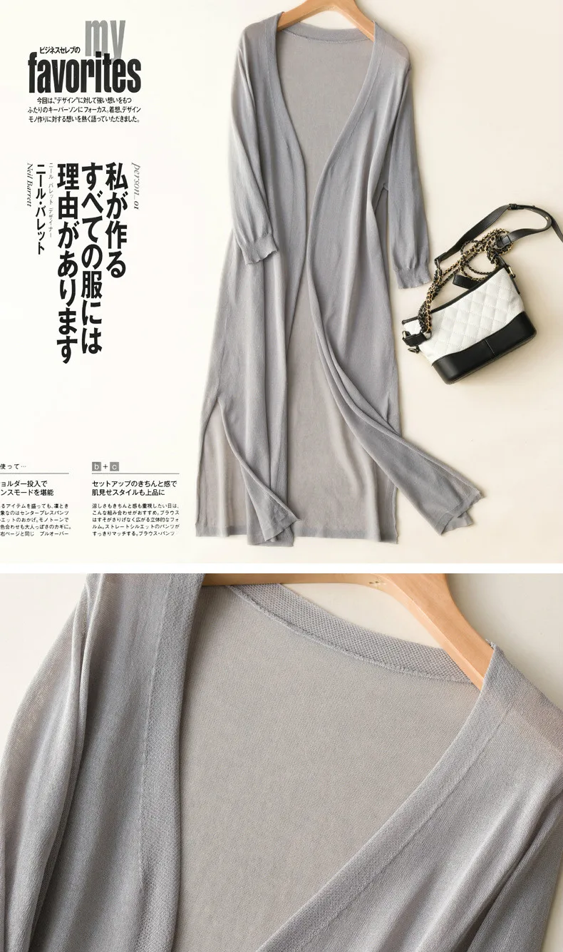 Женский длинный кардиган средней длины, тонкий Шелковый вязаный кардиган, повседневный свободный свитер, модель Лето-Осень 2020