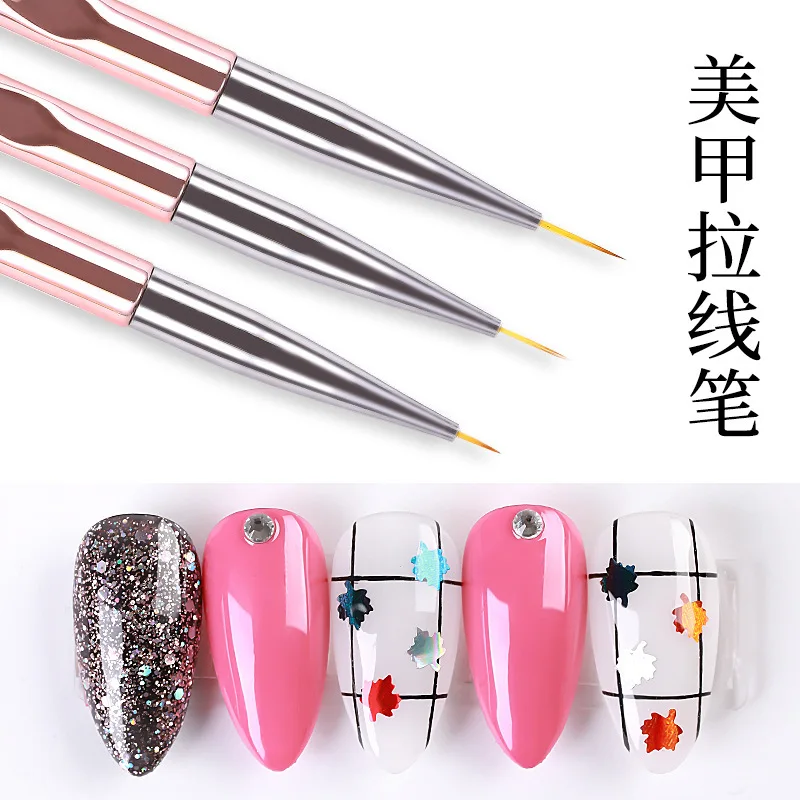 3 шт.компл. розовое золото ногтей искусство линии малярные кисти с металлической ручкой тонкая ручка-лайнер для рисования DIY УФ-гель Советы Дизайн Маникюрный Инструмент Наборы