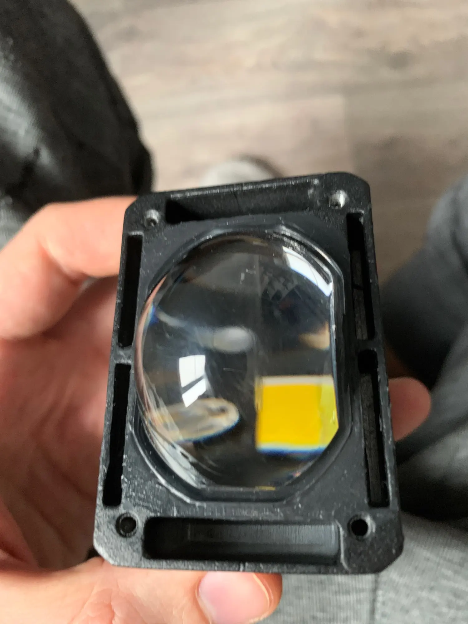 Пришли светильники 30W, вместо заявленных 100W, открыл спор, получил 8$ компенсации. Светят хорошо, на 14 вольтах сильно нагреваются как сами светильники так и драйвер стабилизатора, надо думать об охлаждении, хорошая свето-теневая граница, встречку слепить не будут. Светодиоды установлены на разных уровнях, можно выставить свет один ниже, другой выше, 2-ва светодиода зажечь нельзя, если подать на оба контакта питание светить будет только желтый. Линза стеклянная, толстая. Потребление одним светильником 2,4А
