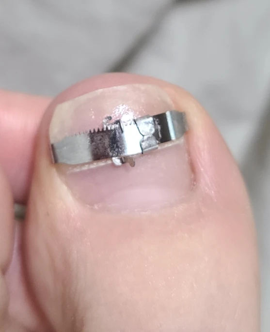 Получила заказ меньше чем через 3 недели. Спасибо продавцу. Приспособление отличного качества. Очень прочный метал. Действительно работает! Можно вытянуть ноготь. Он рос у меня неправильно с детства, после серьезной травмы. Надеюсь со временем получиться вырастить правильный ноготь.
