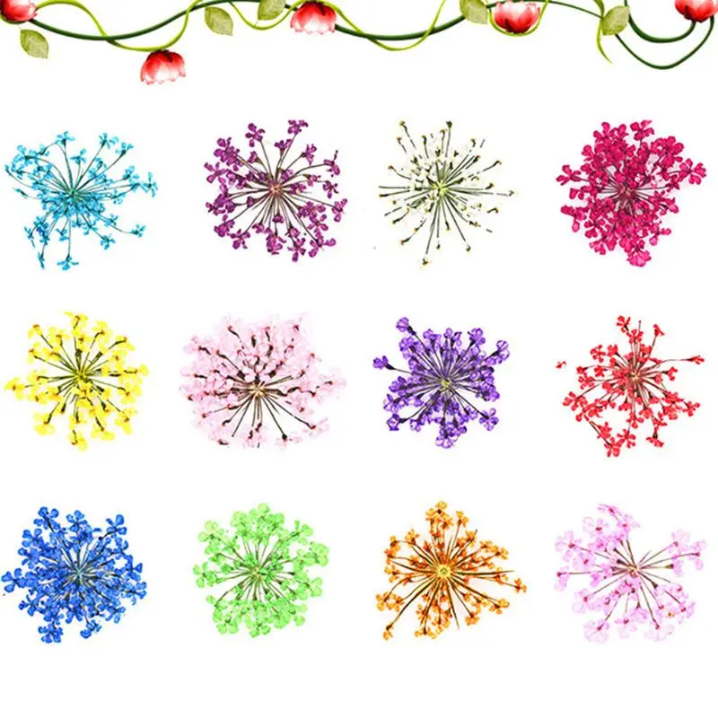 Настоящие прессованные цветы, кружева Анны, искусство высушенный цветок для ногтей смолы, изготовление ювелирных изделий, 24 шт.