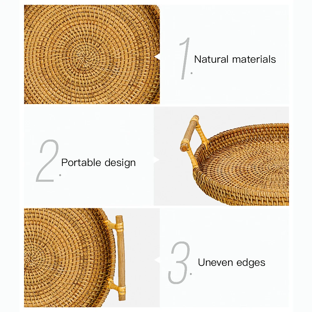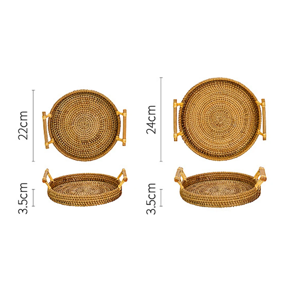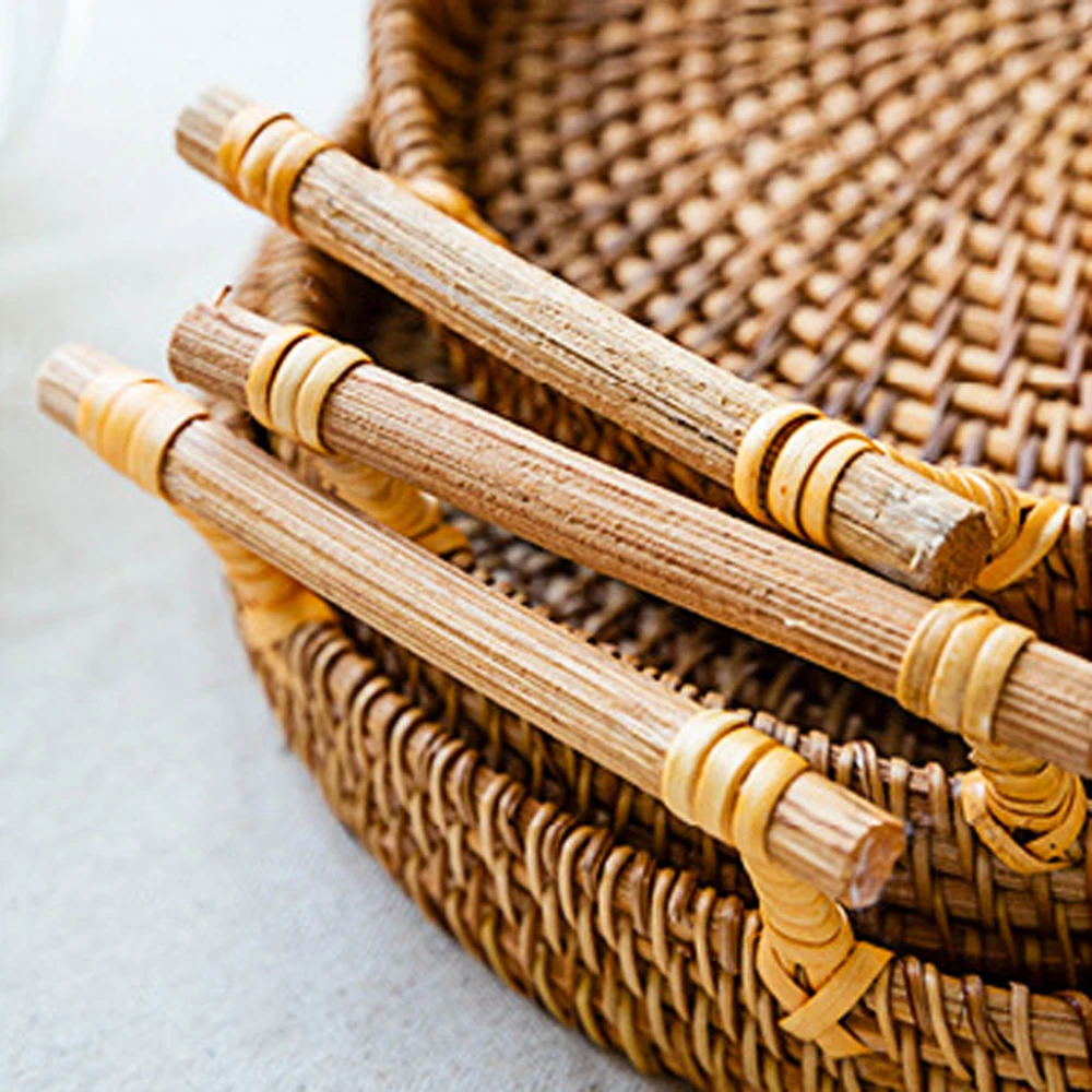 Круглые подставки из натурального ротанга, коврик для чаши, изоляционные салфетки для стола, коврики для чашки, кухонные украшения, корзина для хлеба с ручками
