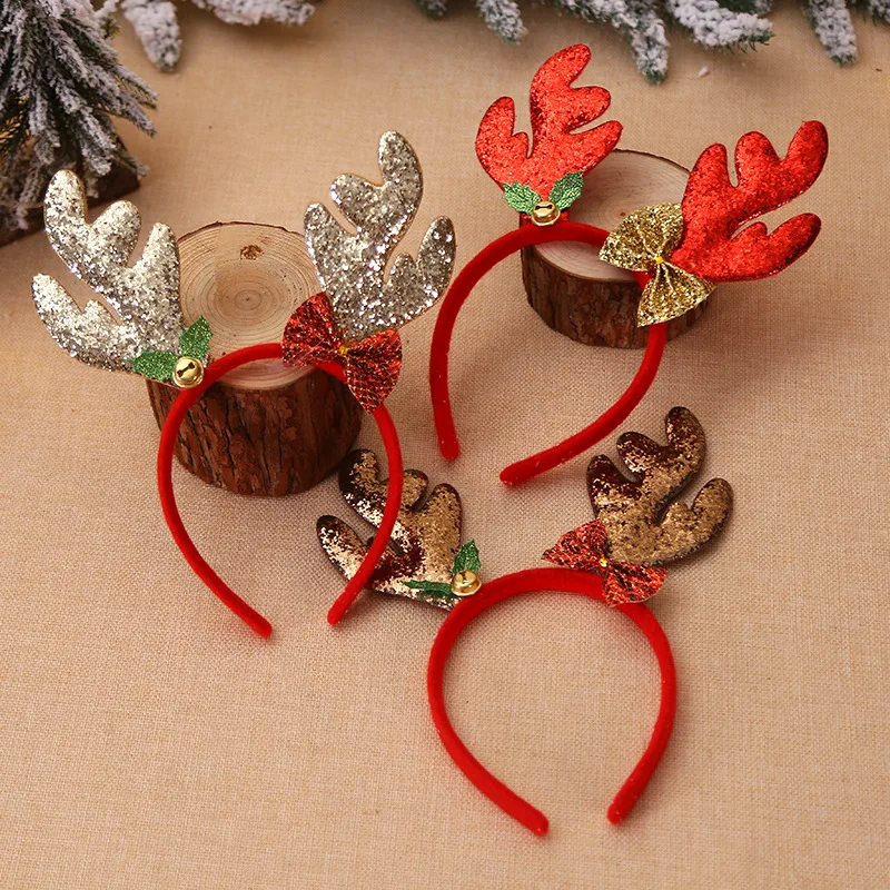 Рождественские украшения, свободная пудра с колокольчиками, повязка на голову, мультяшный милый новый рог оленя, пряжка для головы, товары для праздников и представлений