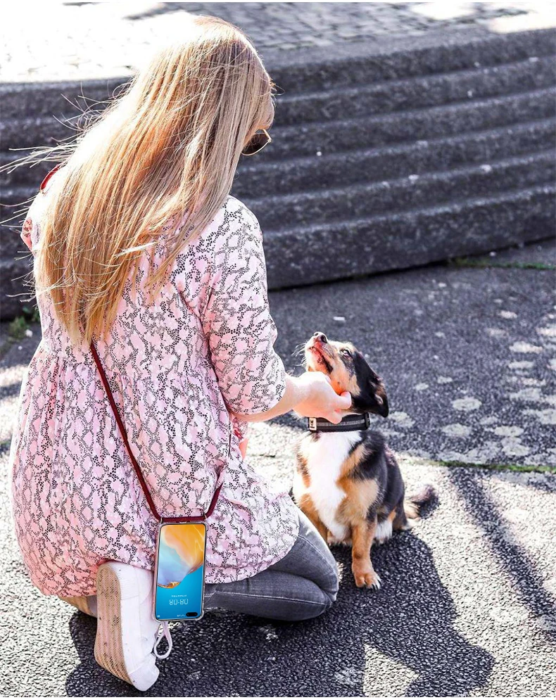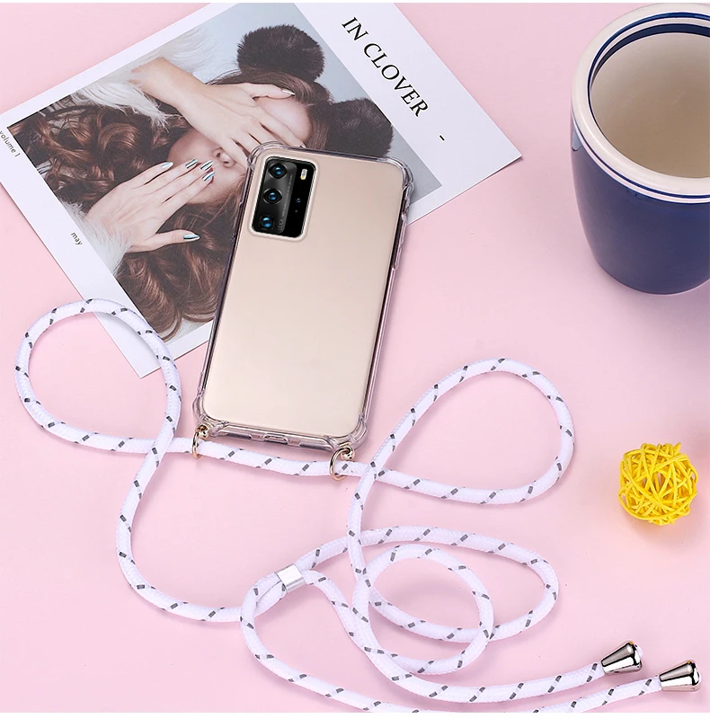 Роскошный силиконовый чехол для телефона с ремешком для Huawei P40 P30 P20 P10 Lite Honor 30 20 9X, милый Ультратонкий чехол для ожерелья с веревкой