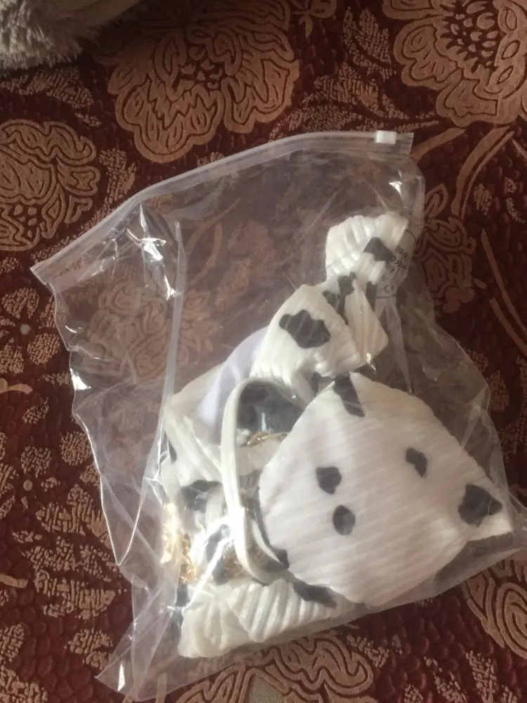 Just like the photo, fits well, nice quality. I am a size 36 DD and I got a Large. The bottoms are on the bigger side but fit well while the top is smaller. Everything is covered but the cup size could be bigger. Overall I'm happy with the product