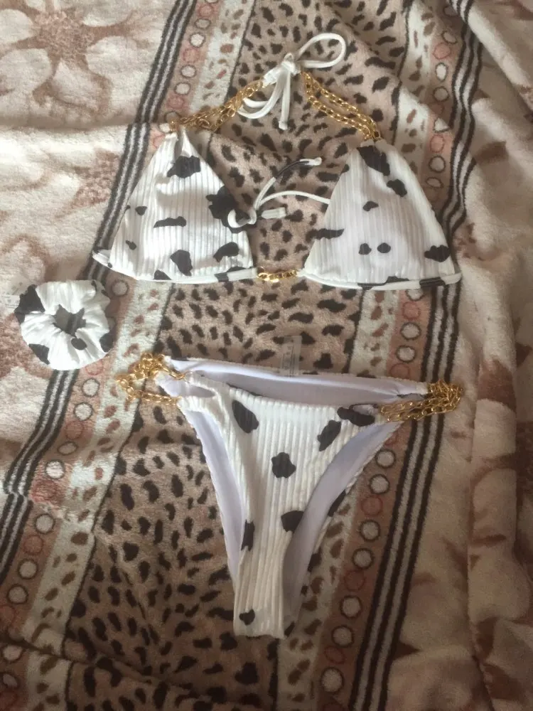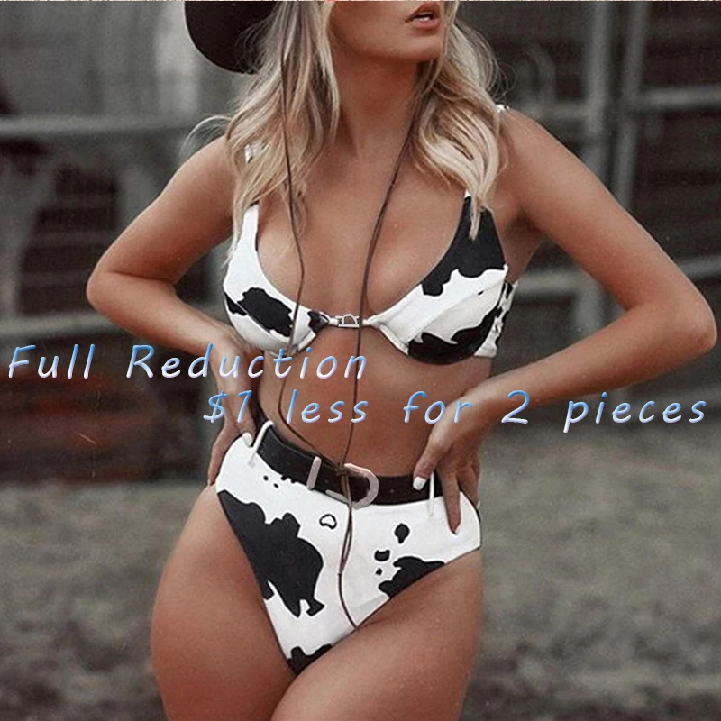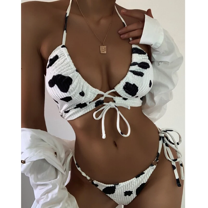 Женский купальник с коровьим принтом Fors, бикини с треугольными лямками через шею, купальник на шнуровке, Женский бандажный плиссированный купальный костюм с эффектом пуш-ап, 2020