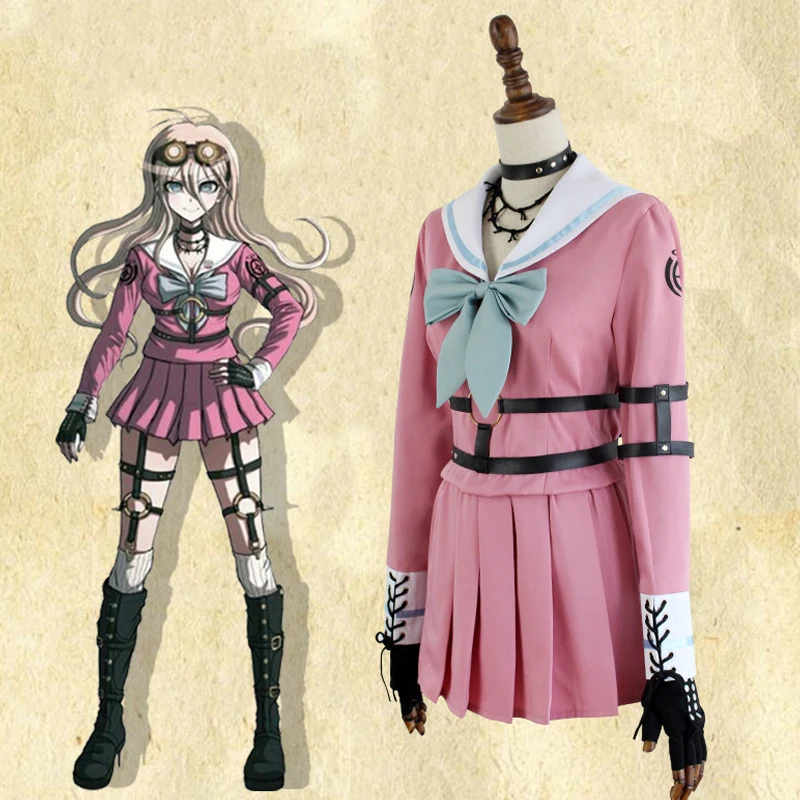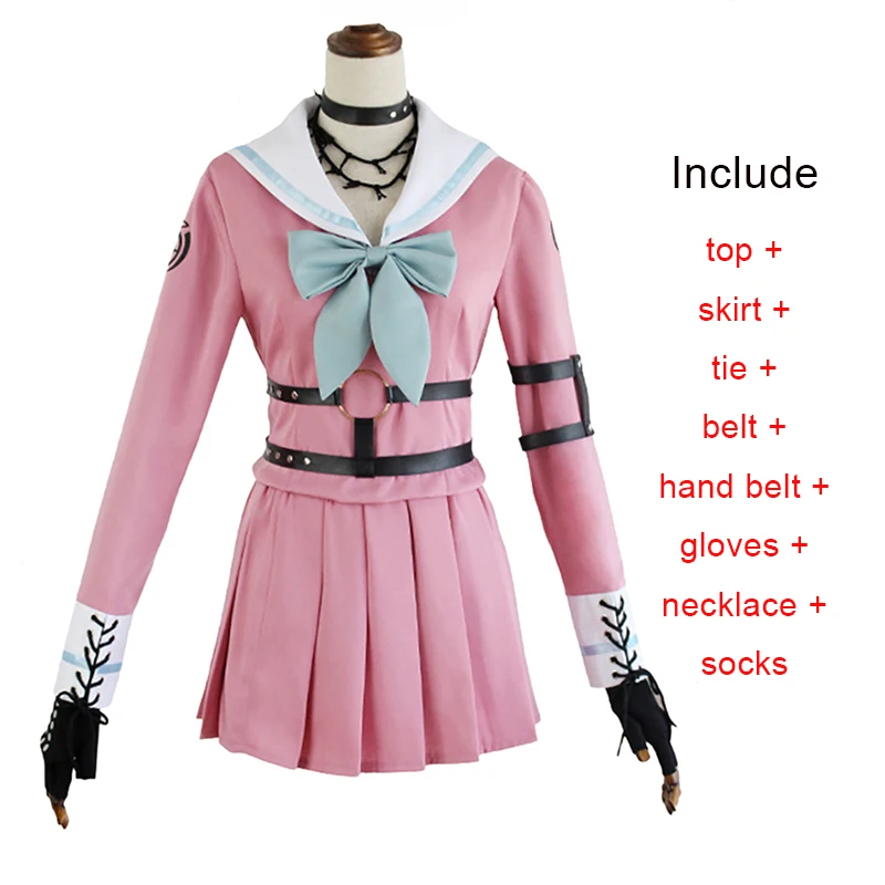 8 шт., Danganronpa V3 Miu Iruma, карнавальный костюм для девочек, топы с длинными рукавами + розовая юбка + ремень, костюмы, подставки под парик, платье C120K204