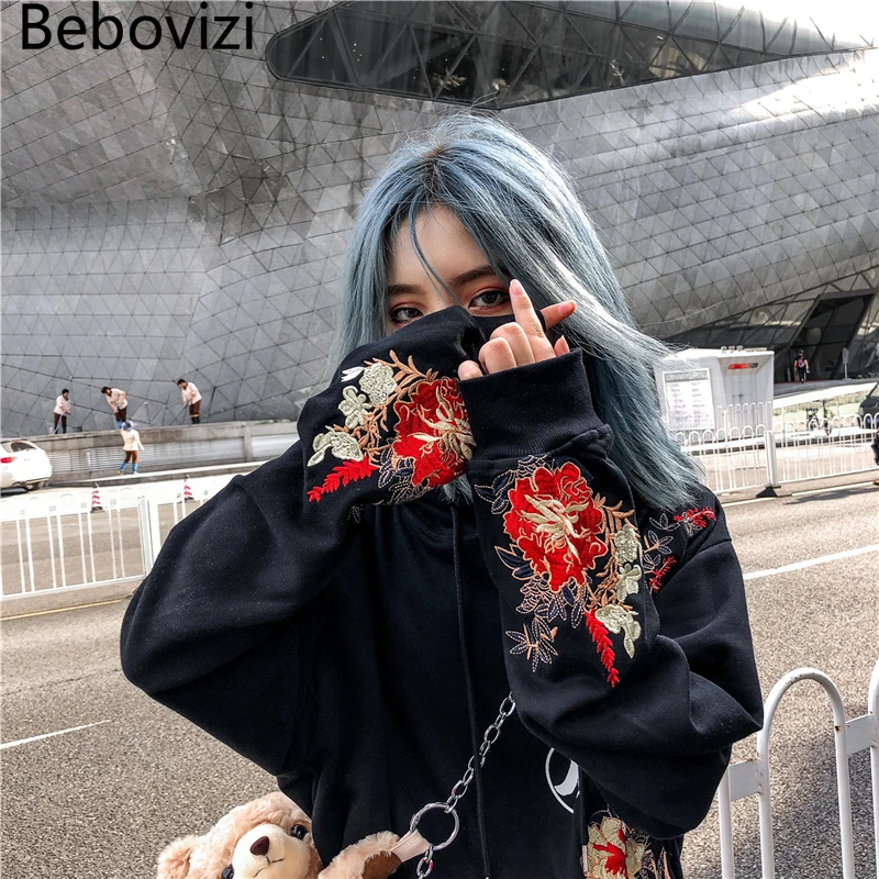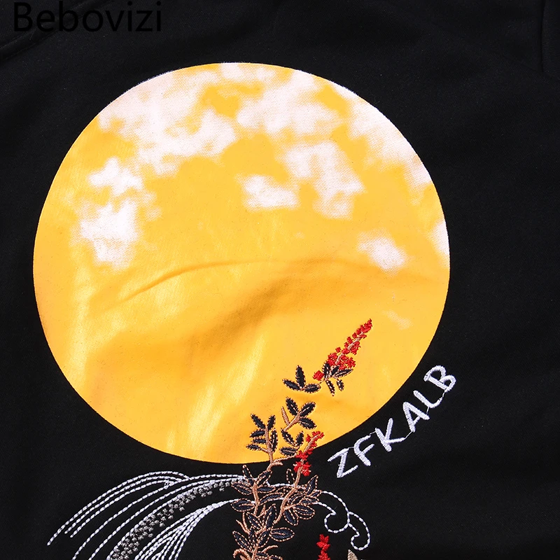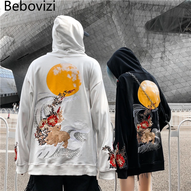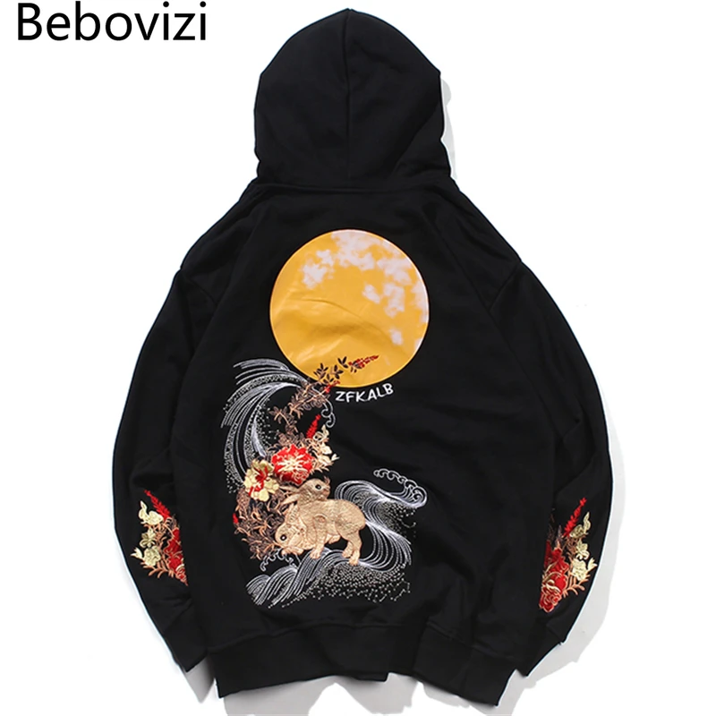 Свитшот Bebovizi мужской в стиле хип-хоп, уличная одежда в стиле Харадзюку, хлопковый пуловер с вышивкой Луны, кролика, Свитшот в китайском стиле, японская одежда