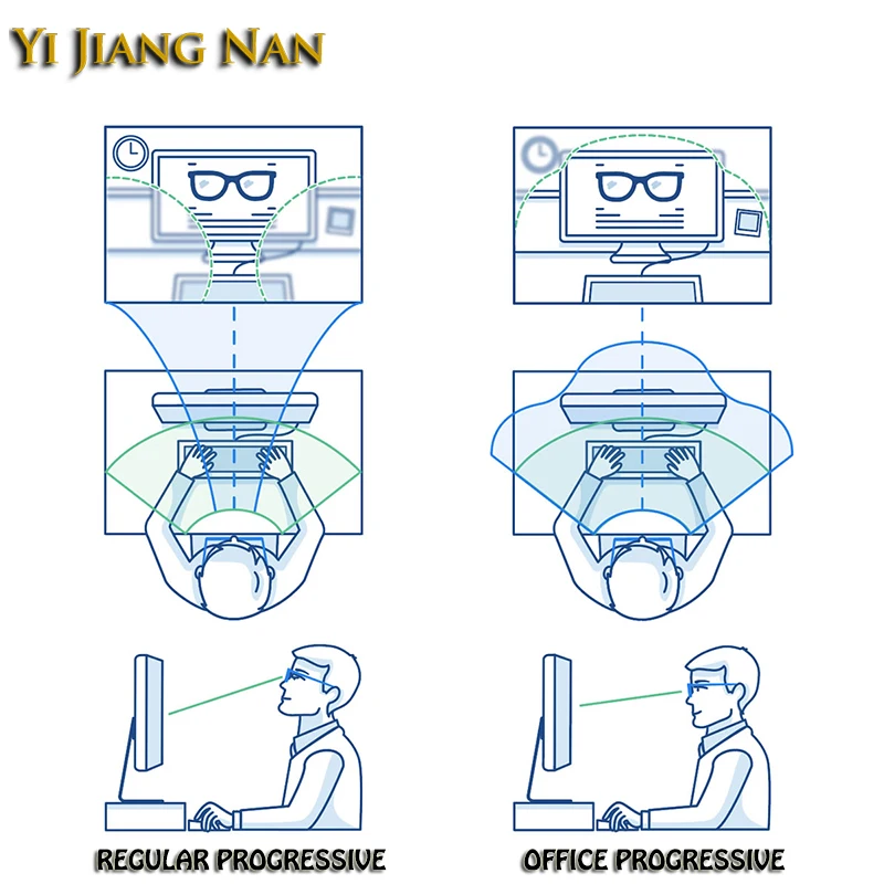 Мультифокальные анти-синие лучевые офисные прогрессивные линзы с большой и широкой областью зрения для промежуточной компьютерной цифровой работы