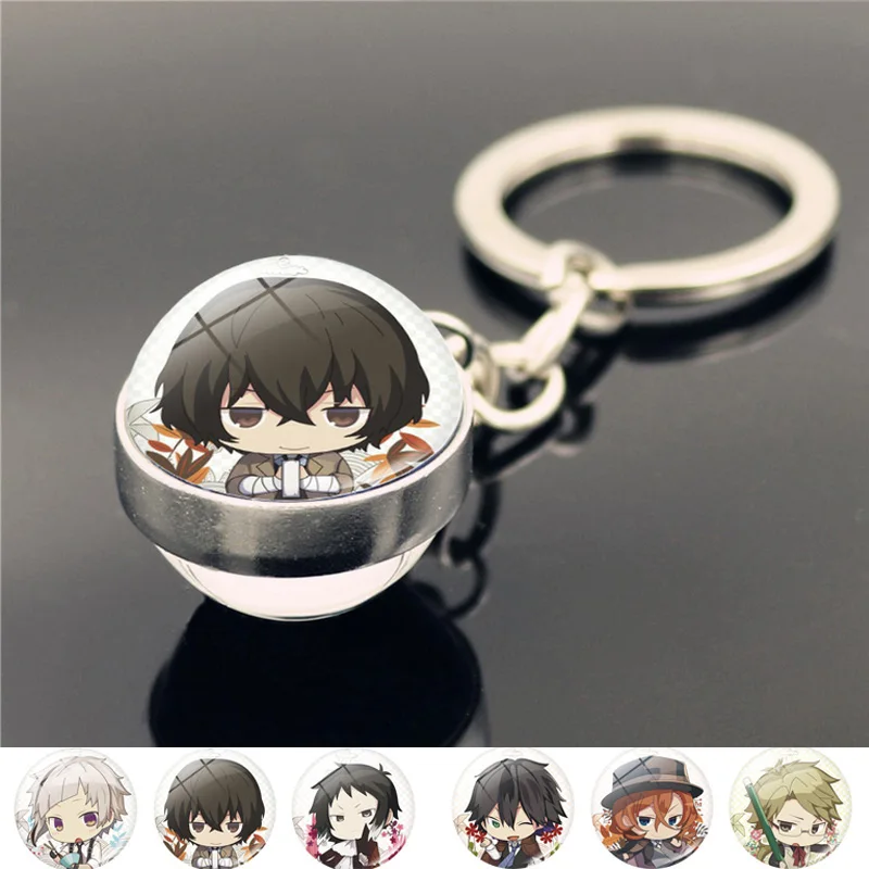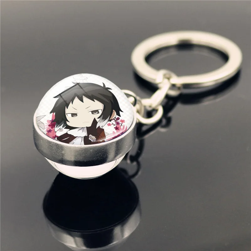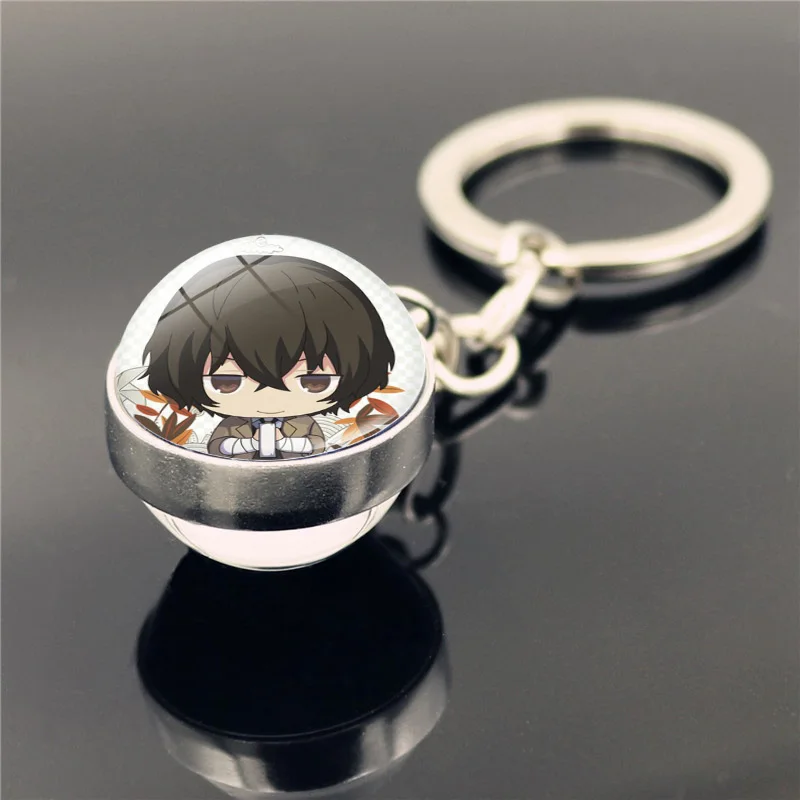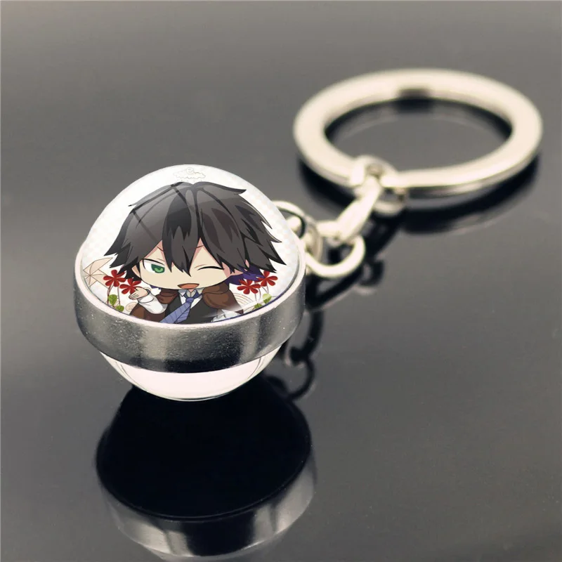 2020 Бунго бродячих собак брелок двухстороннем стеклянном цепочка для ключей с мячиком для Кулон аниме аксессуары брелок с фигурками из мультфильмов