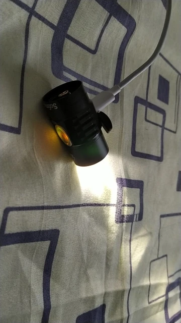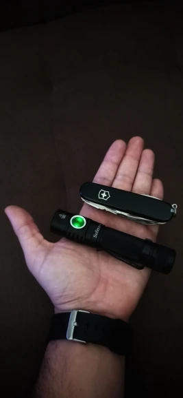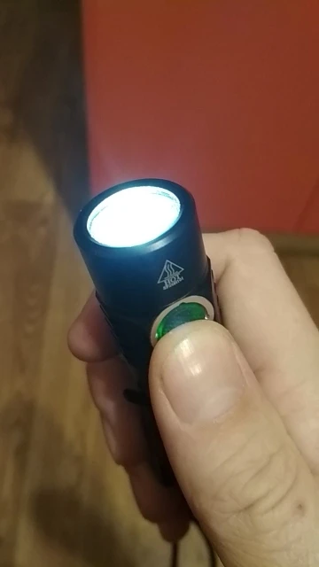 Компактный фонарь, светит белым с зелёным оттенком. Чудес по мощности нет, сравнимо с такого же размера фонарями. Управление удобное, за исключением постоянно включённой кнопки, даже при выключенном фонаре. В темноте легко найти при этом. Продавцу удачи в бизнесе. Спасибо.
