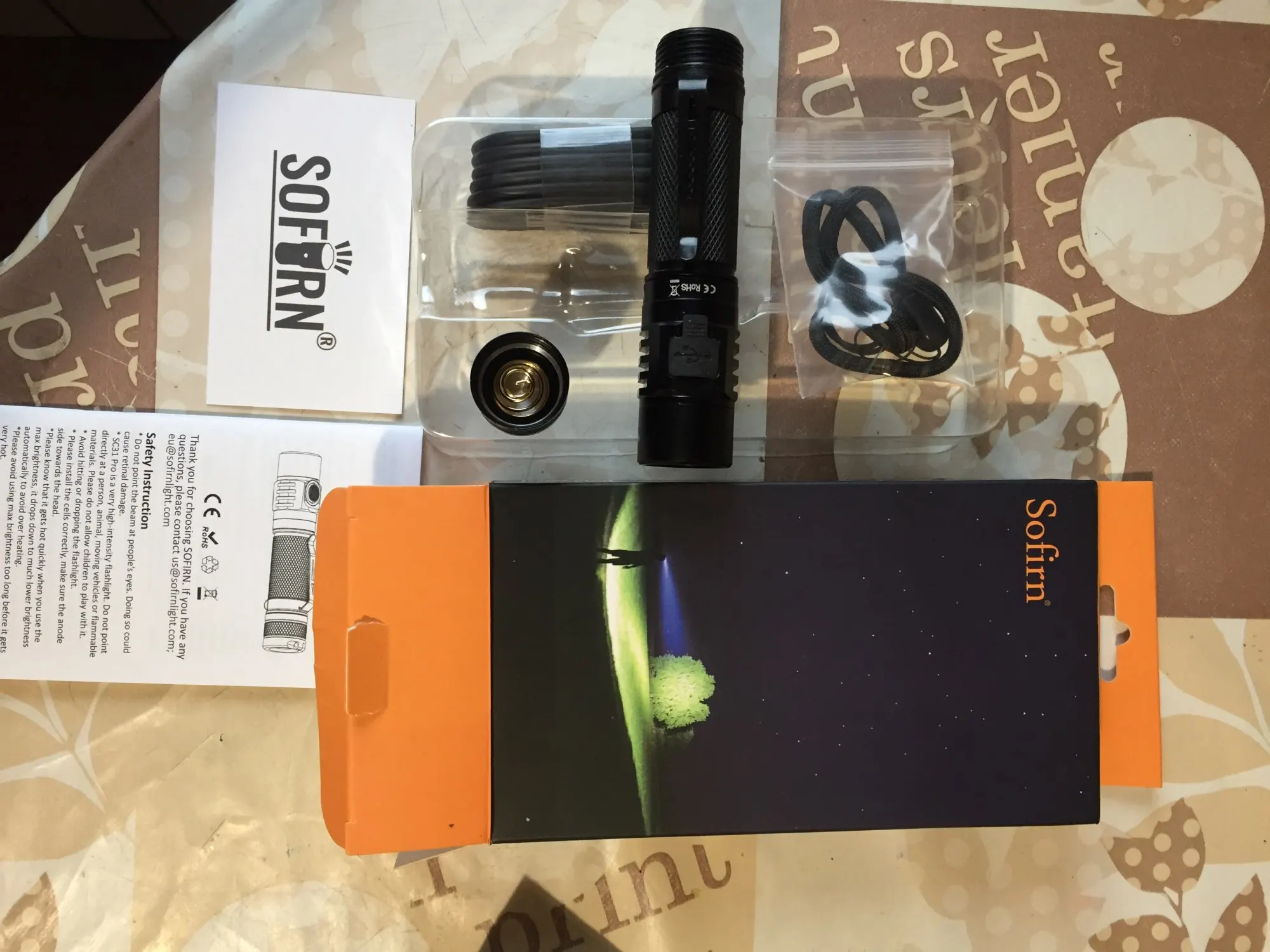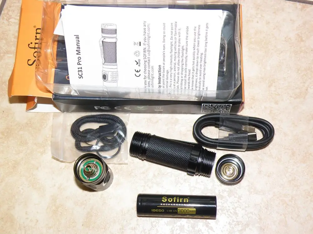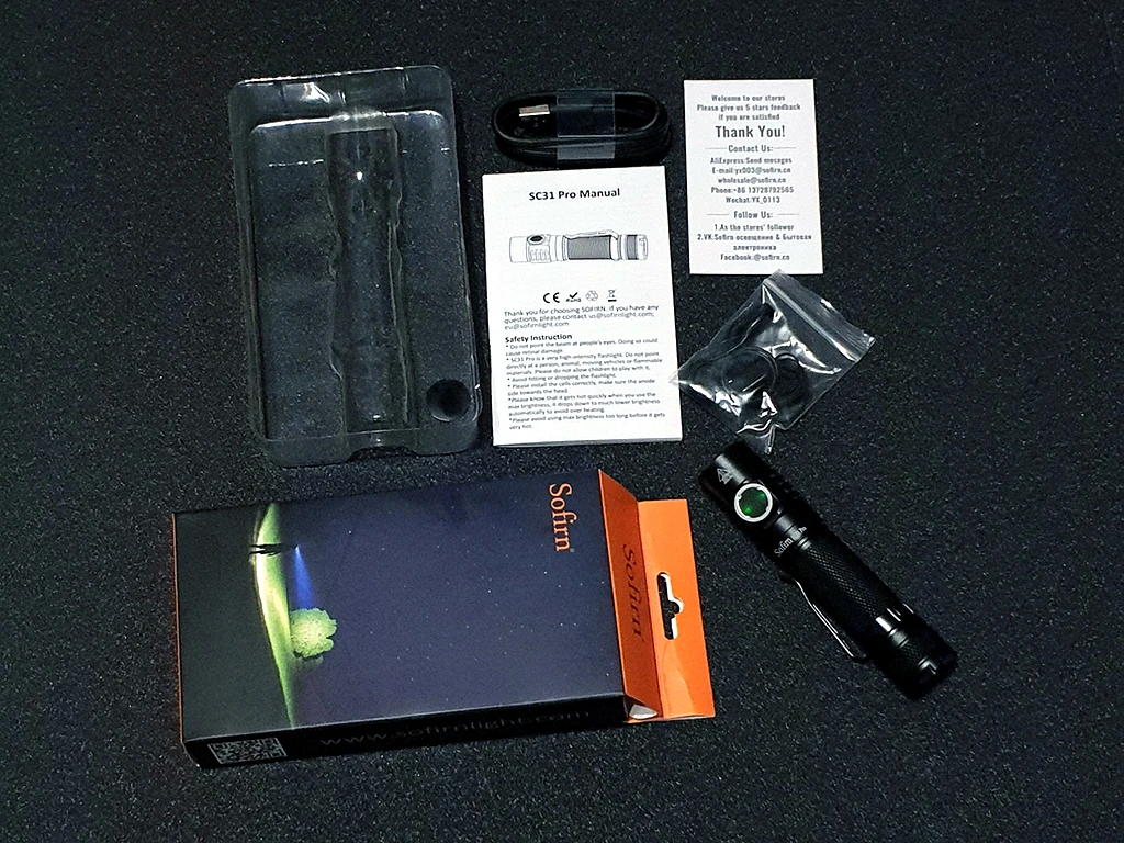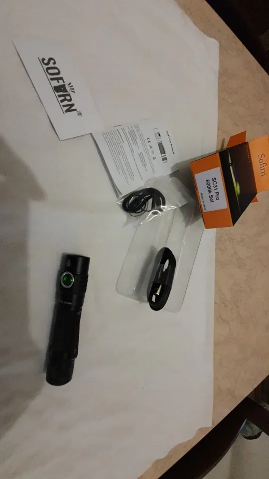 Получил сегодня фонарик, пришел хорошо упакован и открыть коробку sofirn удивлен качеством «сенсационный» дает видеть продукт и все компоненты, как USB кабель упакован, безопасный ремешок на пластике, идеально. Батарея поставляется с 70% зарядкой, чтобы проверить фонарик, и на нем, гораздо больше, чем я ожидал. Очень доволен покупкой и хочу купить еще один товар в ближайшее время. Код отслеживания, когда прибыл в мой город, я не был более обновлен после дня 11 сентября, но сегодня прибыл 25 и 23 дней ожидания было идеальным, и все как рекламируется. Продавец в первую очередь может доверять.