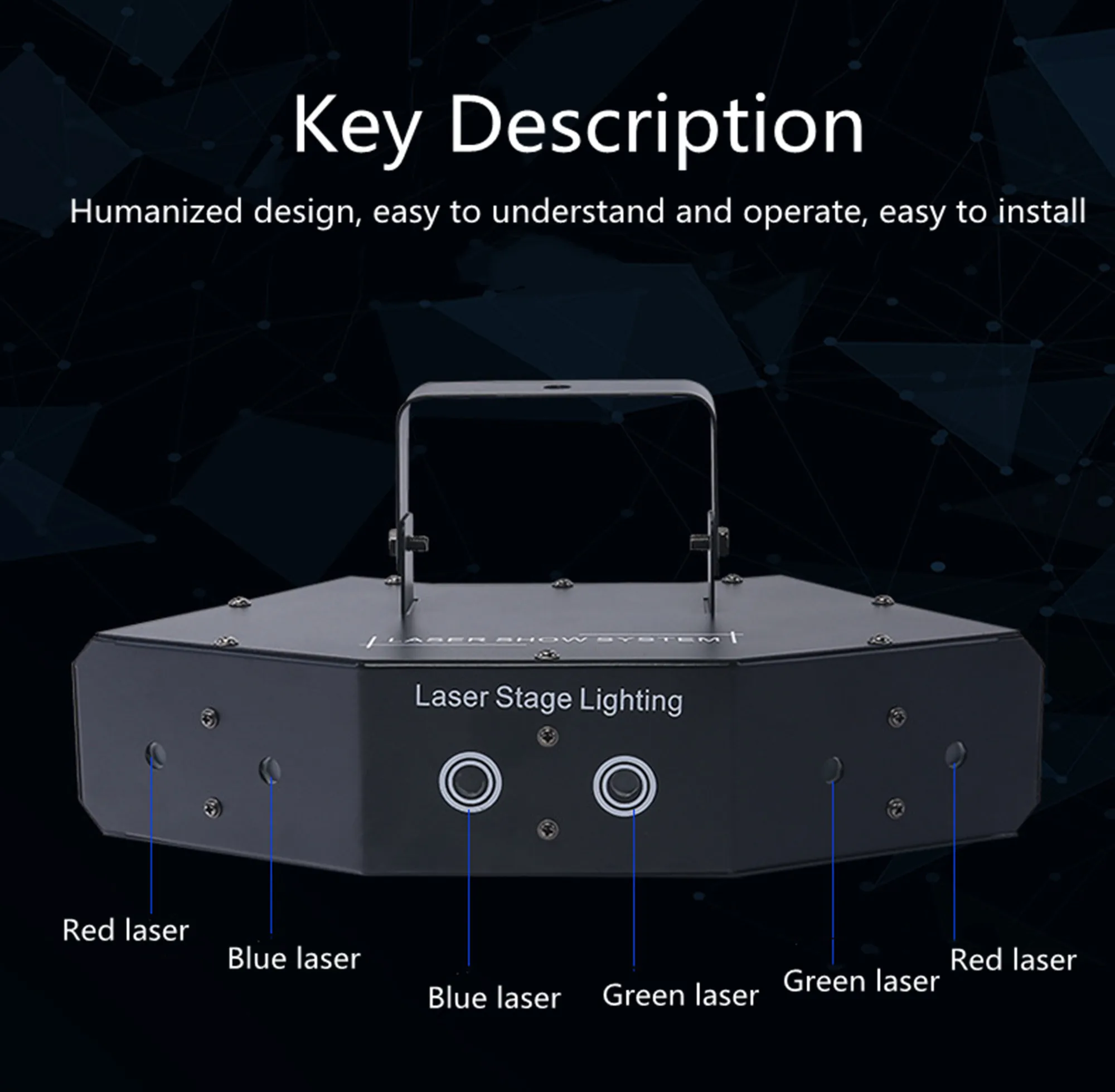 Веерообразный шестиглазный сканирующий RGB лазерный светильник DMX ...
