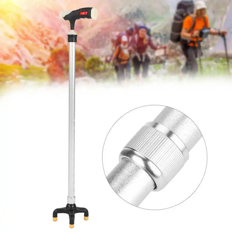Многоцелевой тростник из алюминиевого сплава для пожилых людей Регулируемая высота Нескользящие четырехножные тростники для пожилых людей мобильность
