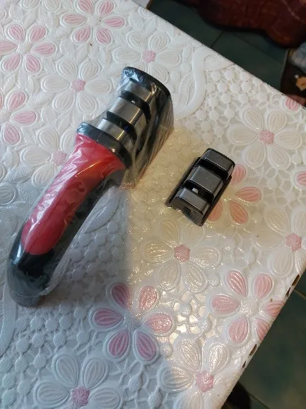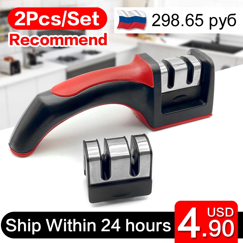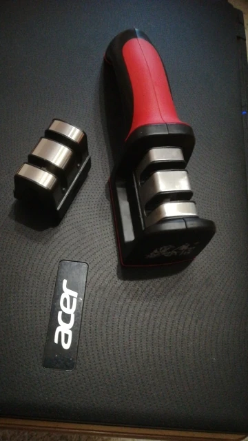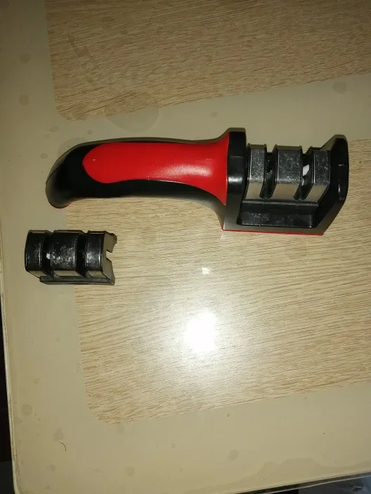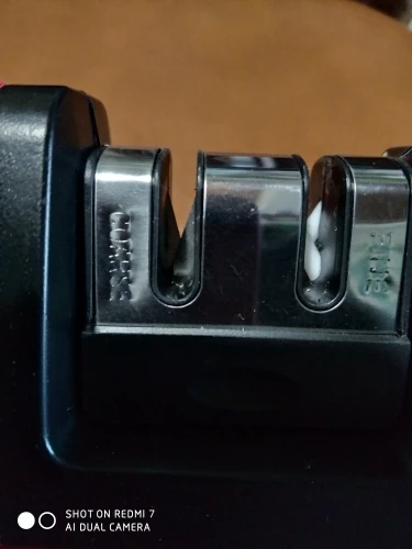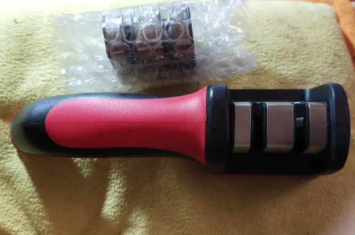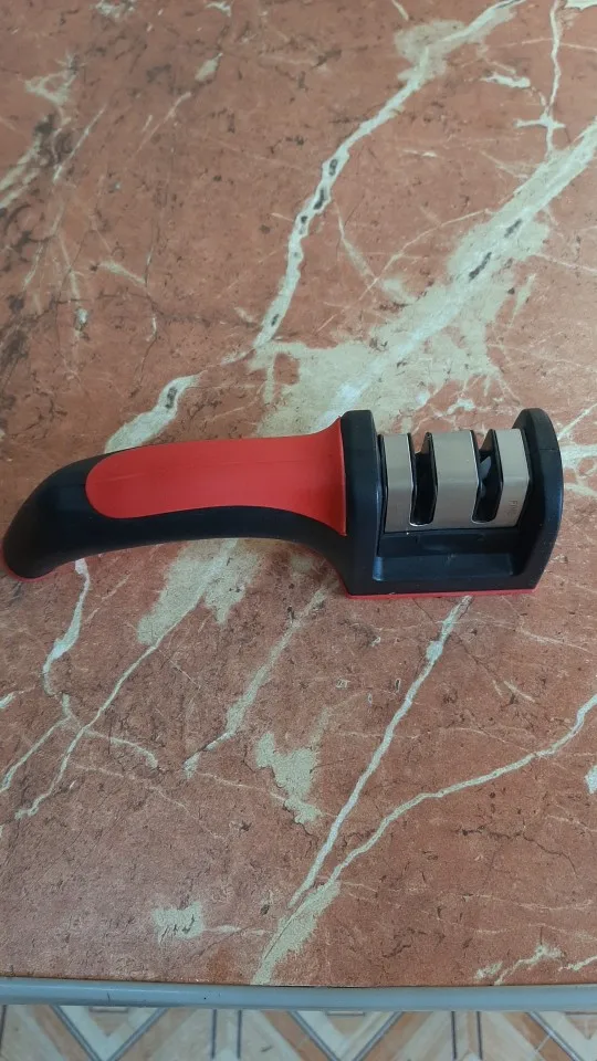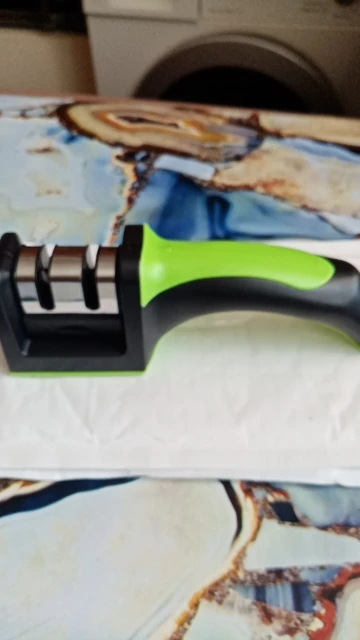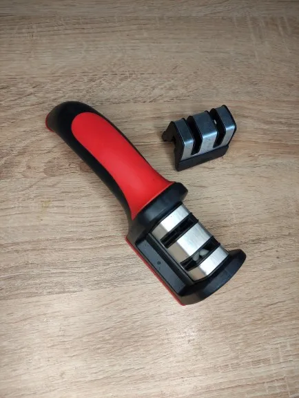 Хорошая точилка для ножей. Ножи точит отлично. В старой точилке сломалось посадочное место одного металлического лезвия, лезвие провалилось внутрь. Плохо, что лезвия закреплены в пластике. Доставка до Ростовской области 3 недели. Посылка была упакована очень хорошо, в воздушный пакет. Спасибо продавцу!