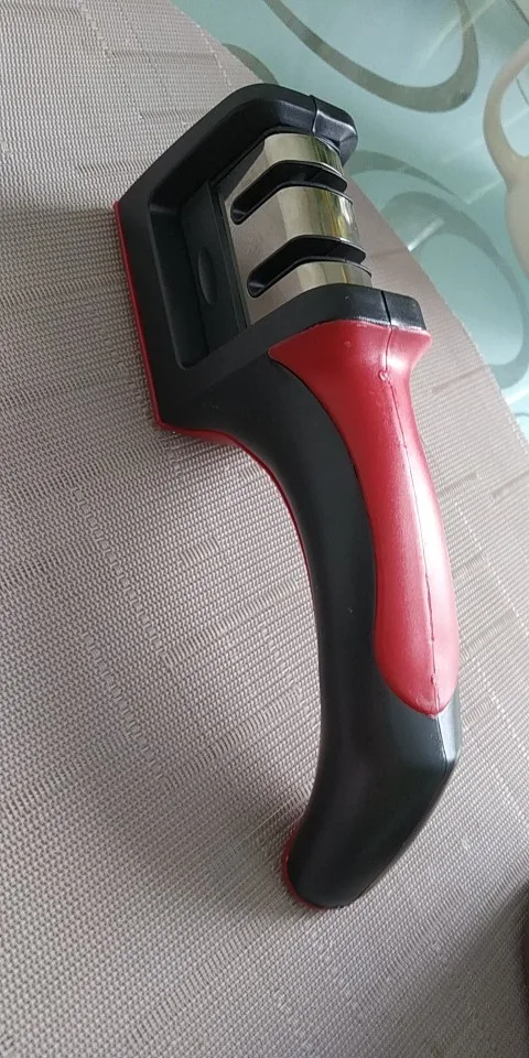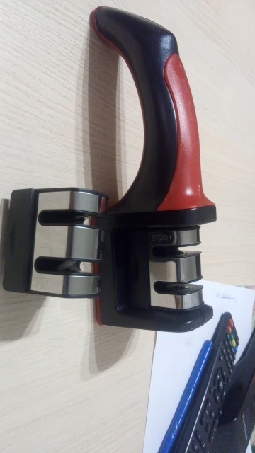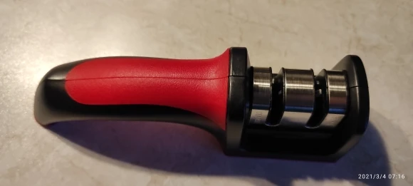 Хорошая точилка. Ножи точит отлично, держать очень удобно. правда, думал рукоятка будет обрезиненная, а она обычная пластиковая. упаковано очень хорошо. продавец отправил заказ через 3 дня. на пересылке несколько заказов объединили в один пакет - так доставка получается быстрее. доставка в Красноярский край 23 дня. продавцу респект.