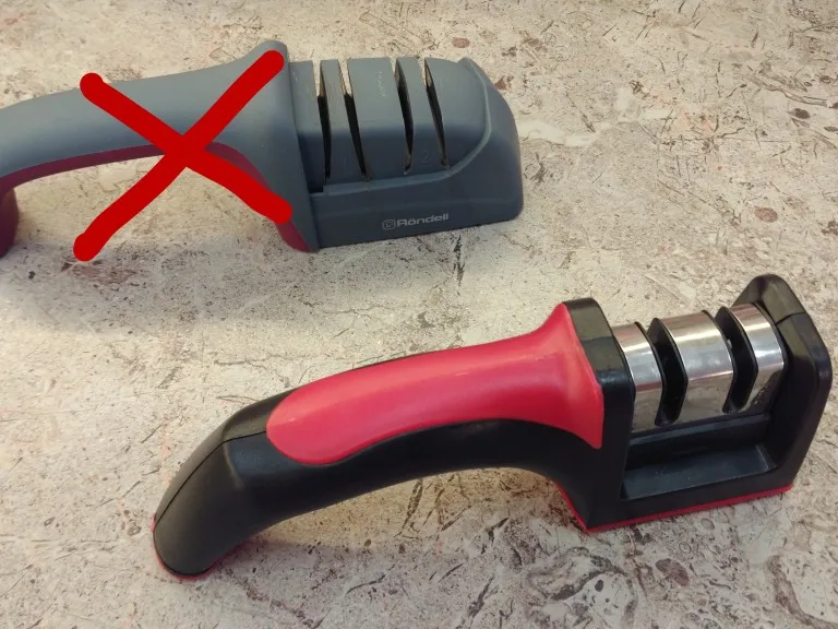 Это самые дешёвые,но лучшие точилки что у меня были,когда сломалась такая же через 2 года,решил купить крутую рендель за 1500 руб, в итоге деньги наветер,пользовался месяц тупыми ножами, пока не пришли эти,рекомендую, время заточки минута,дорогой и за пол часа не смог наточить!!! рекомендую!