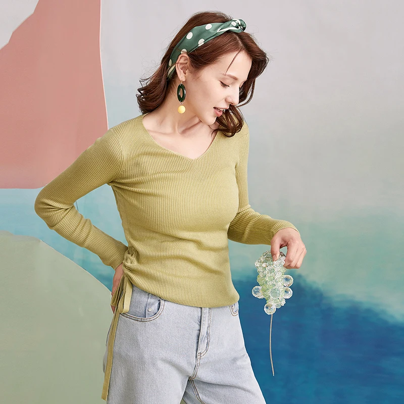 Женский свитер с V-образным вырезом ARTKA, Черный Повседневный тонкий шерстяной пуловер в трех цветах, осень 2020