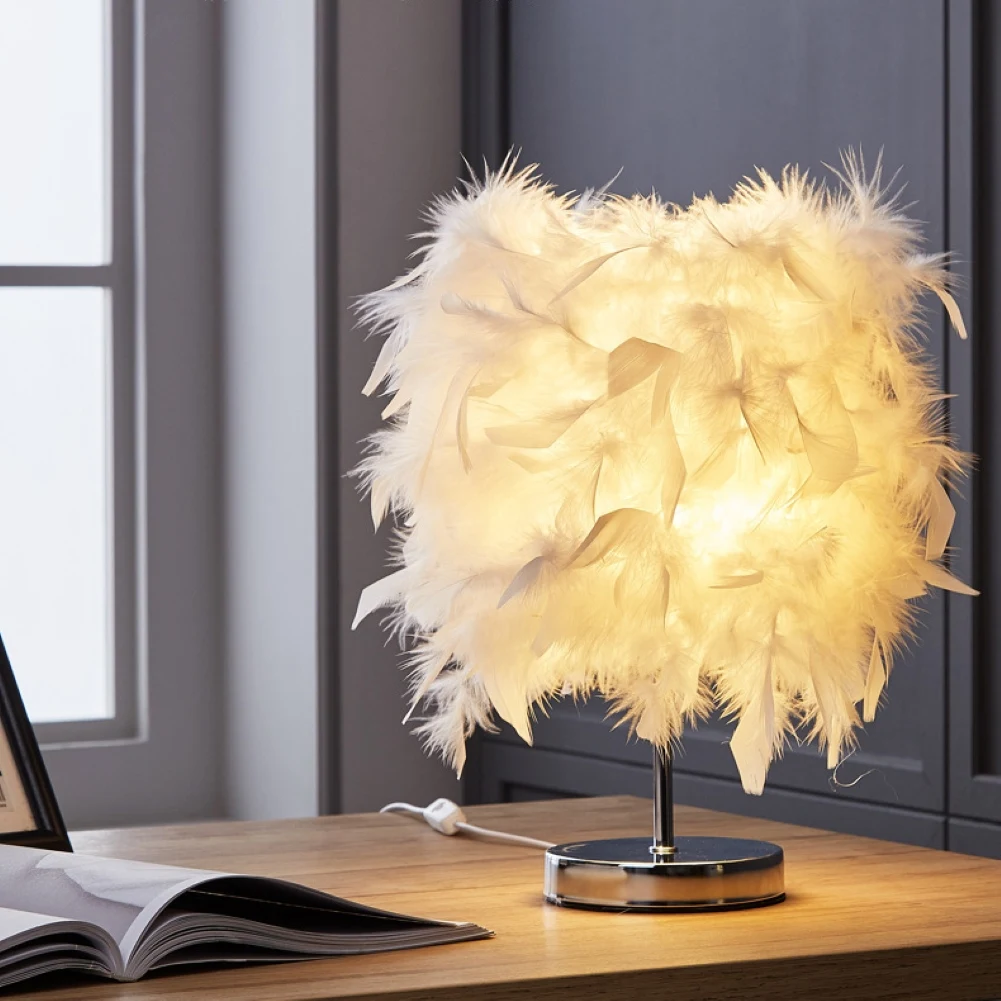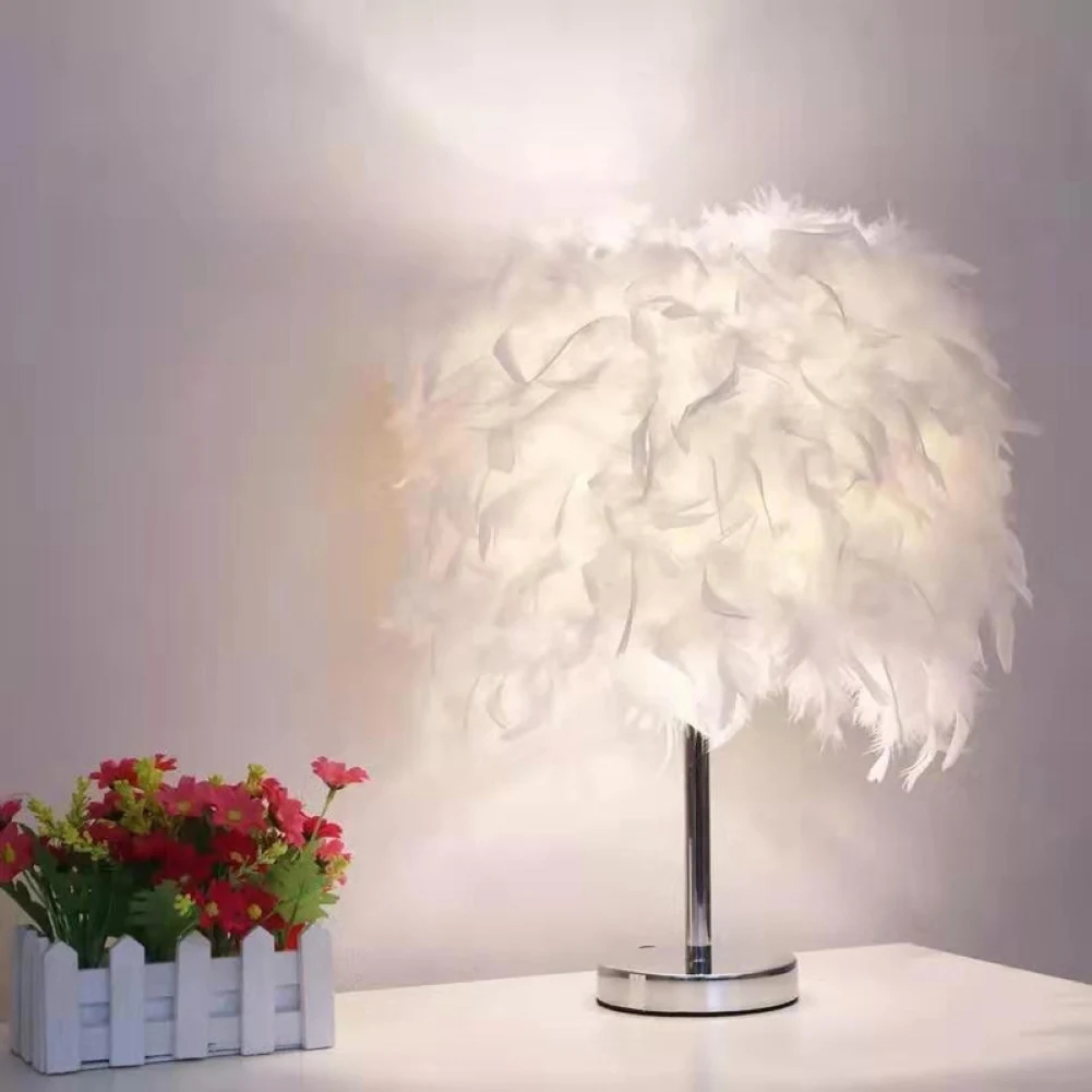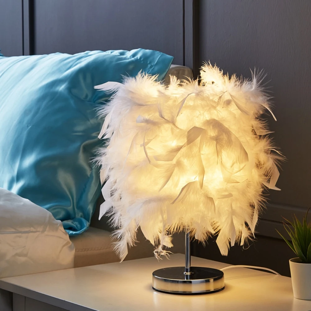 Светодиодная прикроватная лампа E27 с пером, романтический светильник для гостиной, спальни, настольная лампа, ночник, Настольный украшения для дома