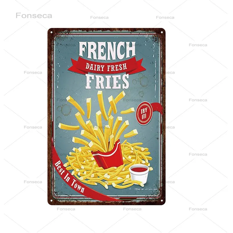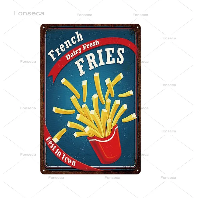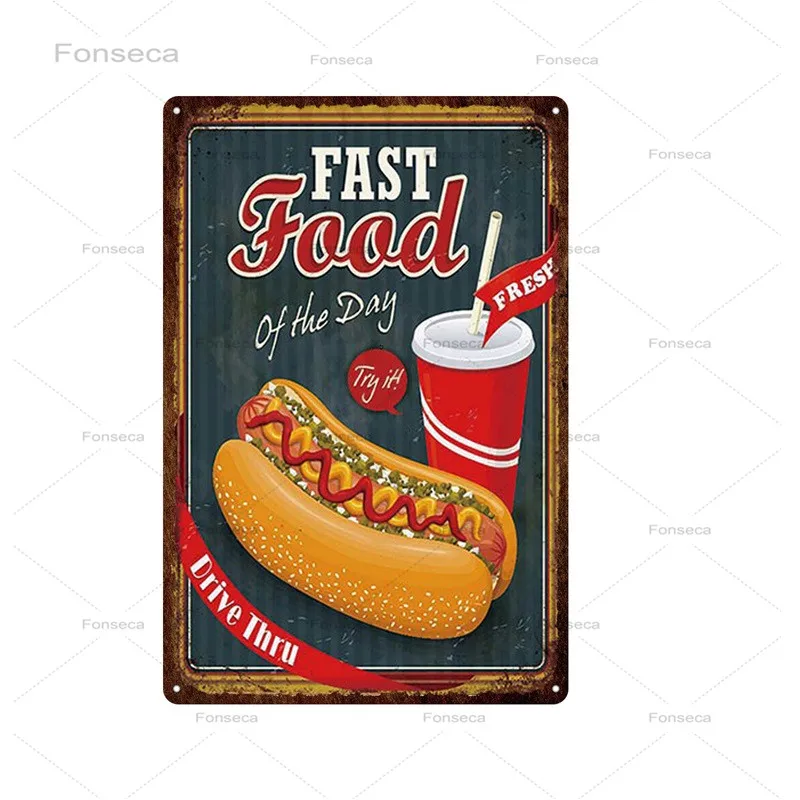 Винтажный металлический знак в виде кофе, бургеров, хот-догов, ретр...