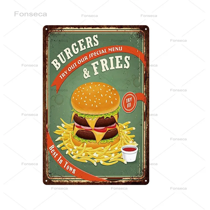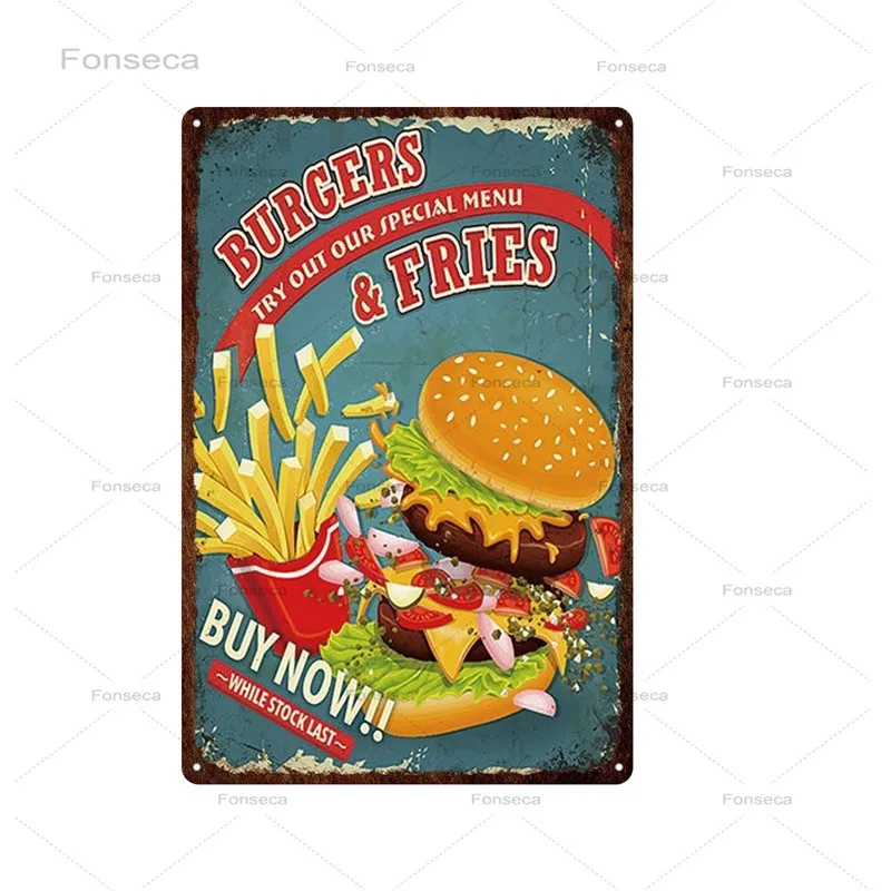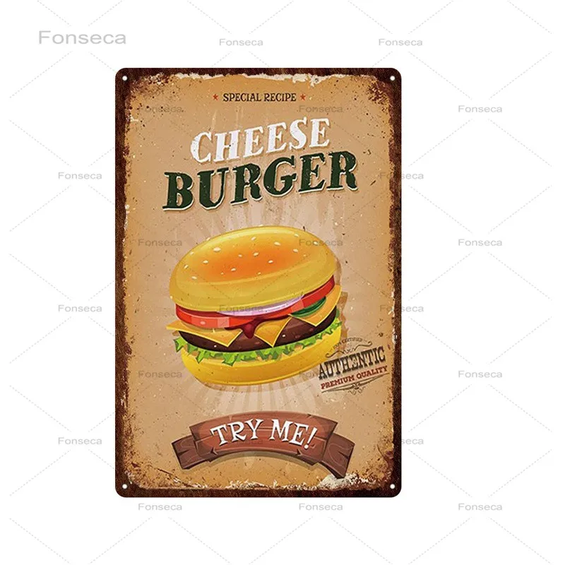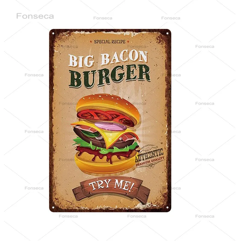 Плакат для фаст-фуда с гамбургерами, металлическая фотография, наст...