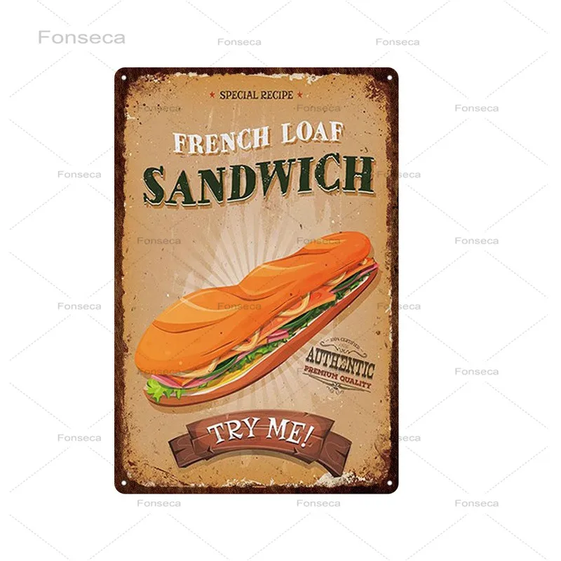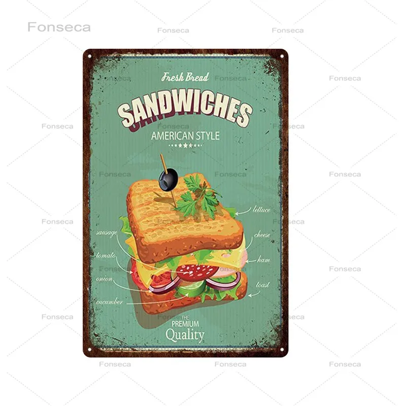 Сэндвич хот-дог бургер металлическая жестяная вывеска Ретро винтажн...
