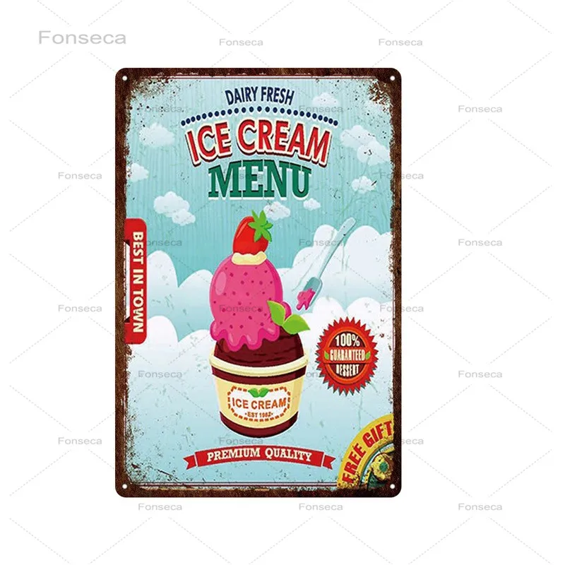 Десерт Мороженое Быстрый Еда Металл Картина "Знак" Плакаты Wall Art...