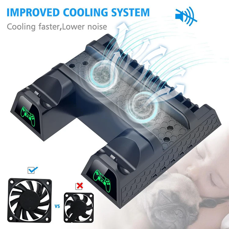 Вертикальная подставка PS4 с охлаждающим вентилятором поставляется с 3 встроенными вентиляторами. Обеспечивает устойчивый поток прохладного воздуха и эффективно поддерживает консоль PS4 от перегрева и продления срока службы.