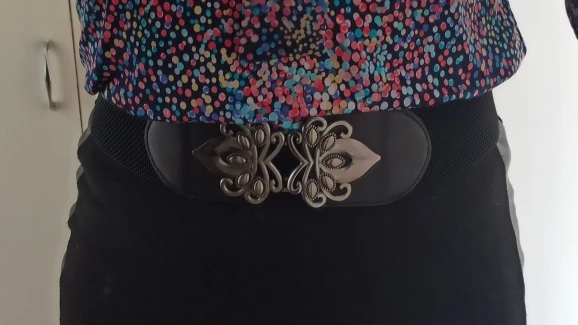 Отличный пояс! Не так туго, как я ожидала, но на заднем ходу это делает его идеальным для более толстых материалов и платьев :)