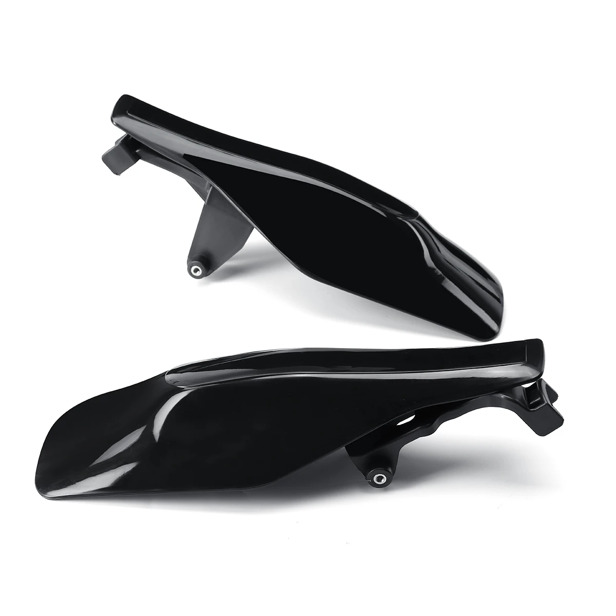 Посылка включает в себя:1 пара защитный чехол для рукХарактеристики:Цвет: черный/белыйМатериал: пластикРазмещение на транспортном средстве: спереди