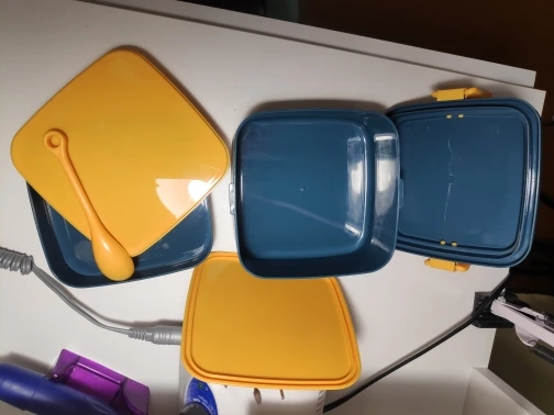 Товар отличный, в целом. Есть только один значимый минус. У маленького лоточка для еды крышка садится не плотно. Соответственно, если в нем будет находится жидкая еда (даже просто какой-то соус), у вас всё благополучно протечет. Контейнер ТОЛЬКО для сухой еды. Крышка с защелками прижимает контейнер не плотно.