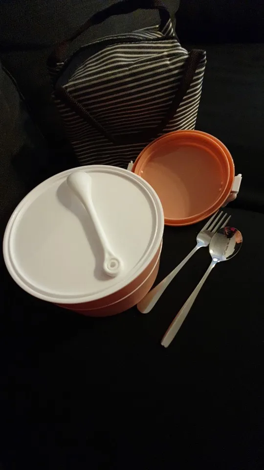 хороший и эстетичный ланч бокс для тех, кто берет на работу несколько вариантов пищи. пока не разобралась как носить только одну часть, ведь крышка с защёлкой одна и рассчитана на определенную высоту. запах пластика пропал после нескольких промываний. сумка супер! можно ещё положить бутылочку воду, к примеру. ложка пластиковая в комплекте помещается в бокс, а обычные (которые пришли с боксом) нет.