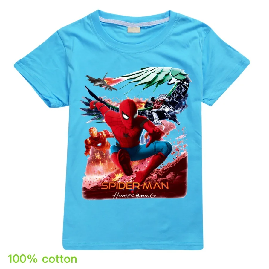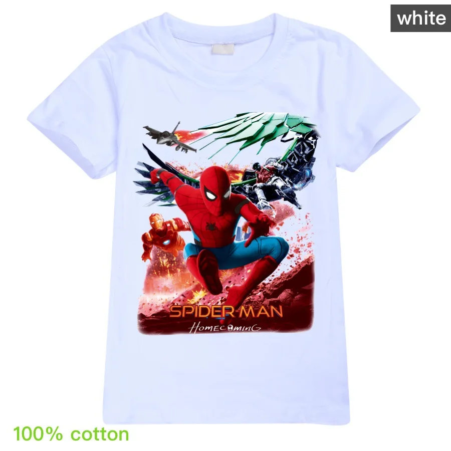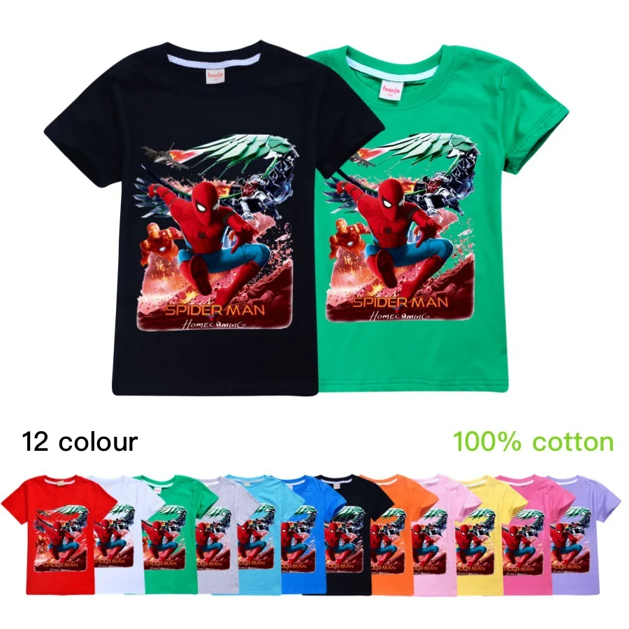 Лидер продаж, новинка 2020 года, детские футболки с принтом популярного героя, Человека-паука хлопковые футболки с короткими рукавами для маленьких мальчиков и девочек летняя одежда для подростков детские топы, футболки, детские костюмы для детей возрастом от От 2 до 16 лет, белый, розовый, желтый, серый, красный, фиолетовый, синий, розовый, зеленый С номером отслеживания