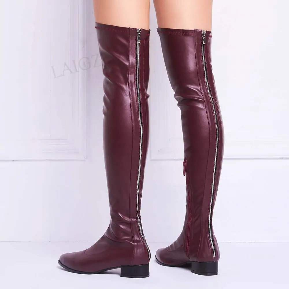 Женские ботфорты на молнии, из искусственной кожи, большие размеры ...