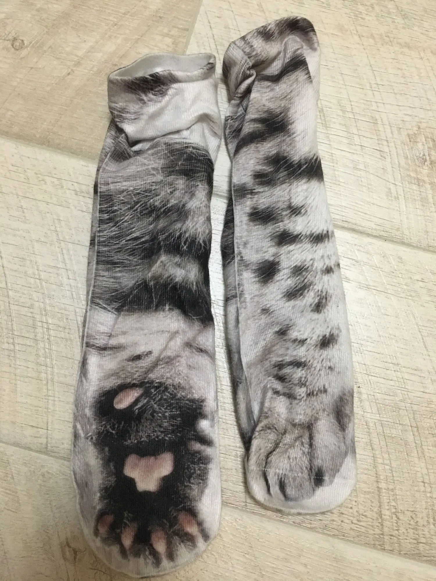 Детские носки с 3D-принтом лап, унисекс, с рисунком кота, тигра