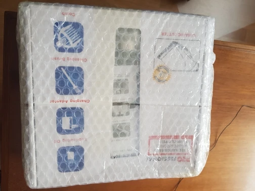 Доставка прибыла в большом состоянии. Машина работает. Хорошая отделка, сдвиг всего тела не является идеальным. Отличные аксессуары, включая расческу и резак для ногтей, за пределами 4 адаптеров, пластиковое лезвие и заказ. Запрос сделан 22 февраля. Прибыл 1 месяц для Бразилии.