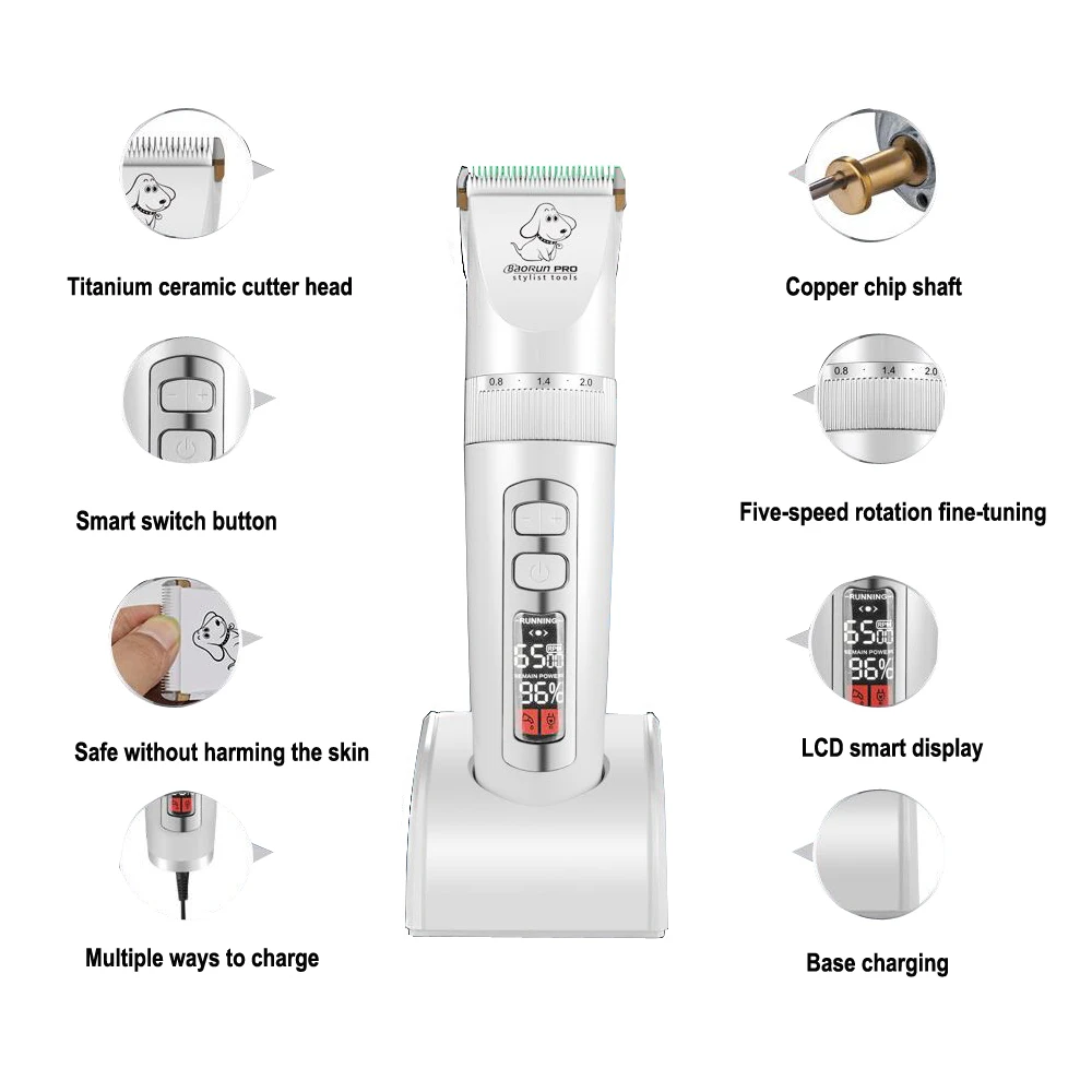 Машинка для стрижки домашних питомцев Baorun P9, Профессиональный электрический триммер с ЖК-дисплеем для кошек и собак, перезаряжаемая машинка для груминга животных