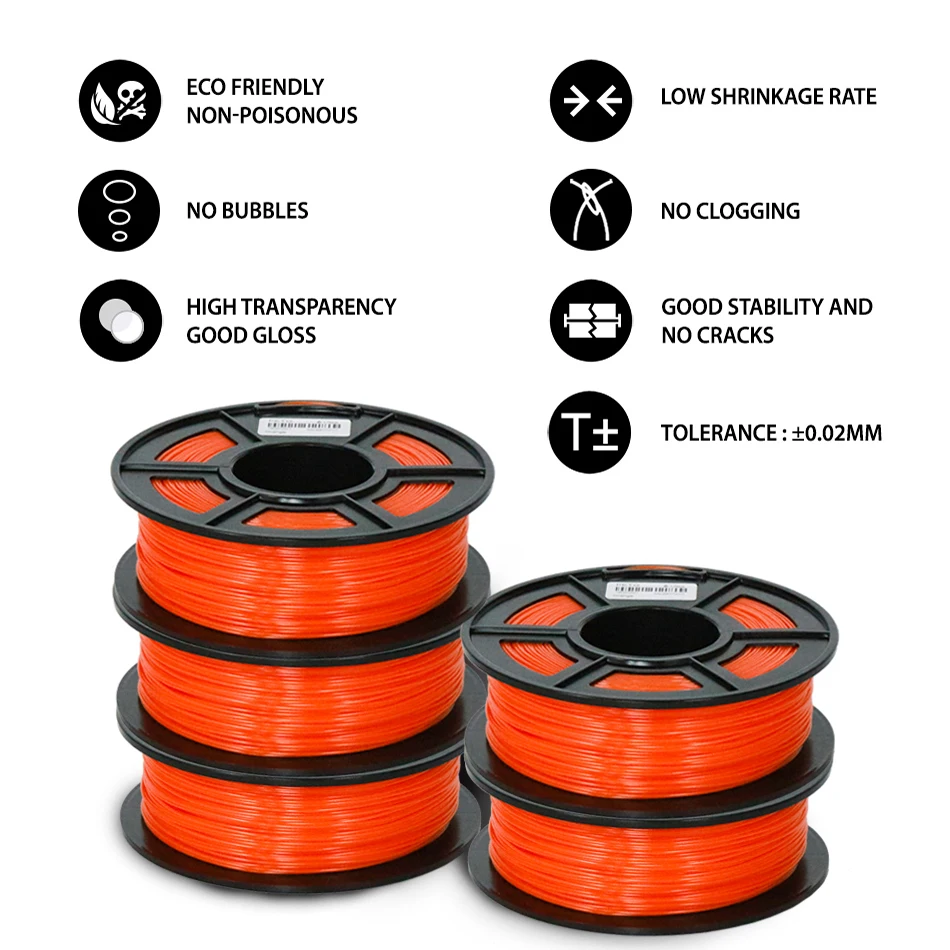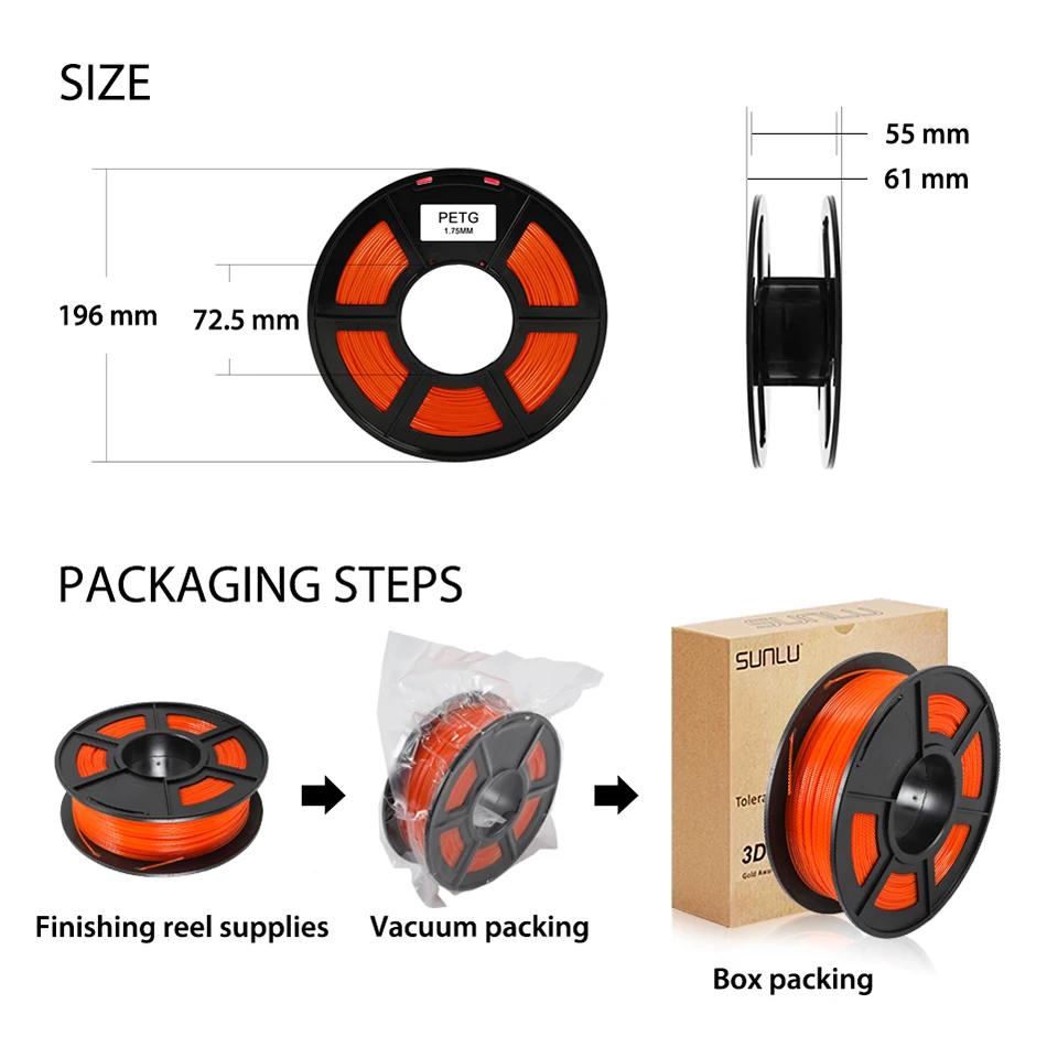 PETG нить хорошая прочность, высокая твердость, ударная прочность в 30 раз больше, чем PLA и удлинение при разрыве более 50 раз PLA.Совместимые принтеры должны иметь нагревательное устройство, могут печатать модели имеют строгие требования к прочности и прочности, такие как: pedant, также может печатать сильно термостойкие и прозрачные модели, такие как: lampshde.100% без Пузырькового 3d материала принтера.