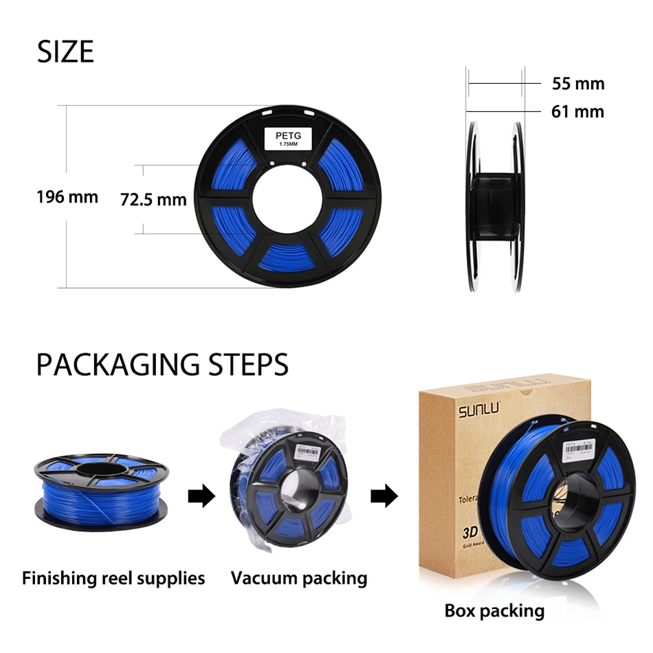 SUNLU PETG 3D нити 1,75 мм 3D-принтеры нити пластмассовая коробочка для PETG хорошая прочность полиграфические материалы 10 рулоновнабор