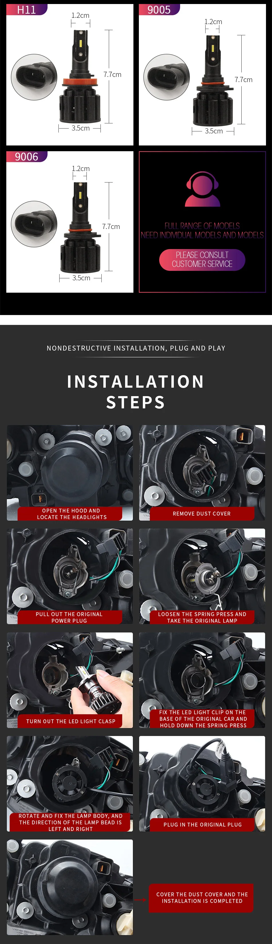 Plug TypeH1 H3 H4 H7 H119005 9006 Car led headlamp b