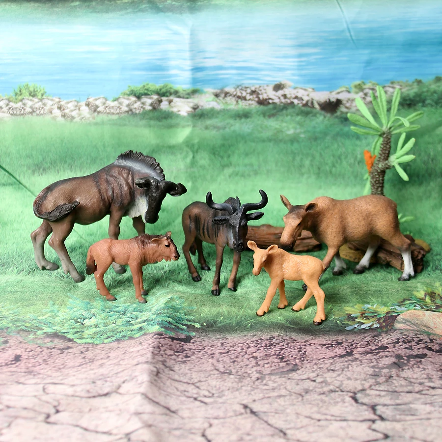 Реалистичная ручная роспись диких животных kiang Camel Donkey wildebeest Семейный комплект Модель Коллекционная Фигурка обучающая игрушка торт Топпер